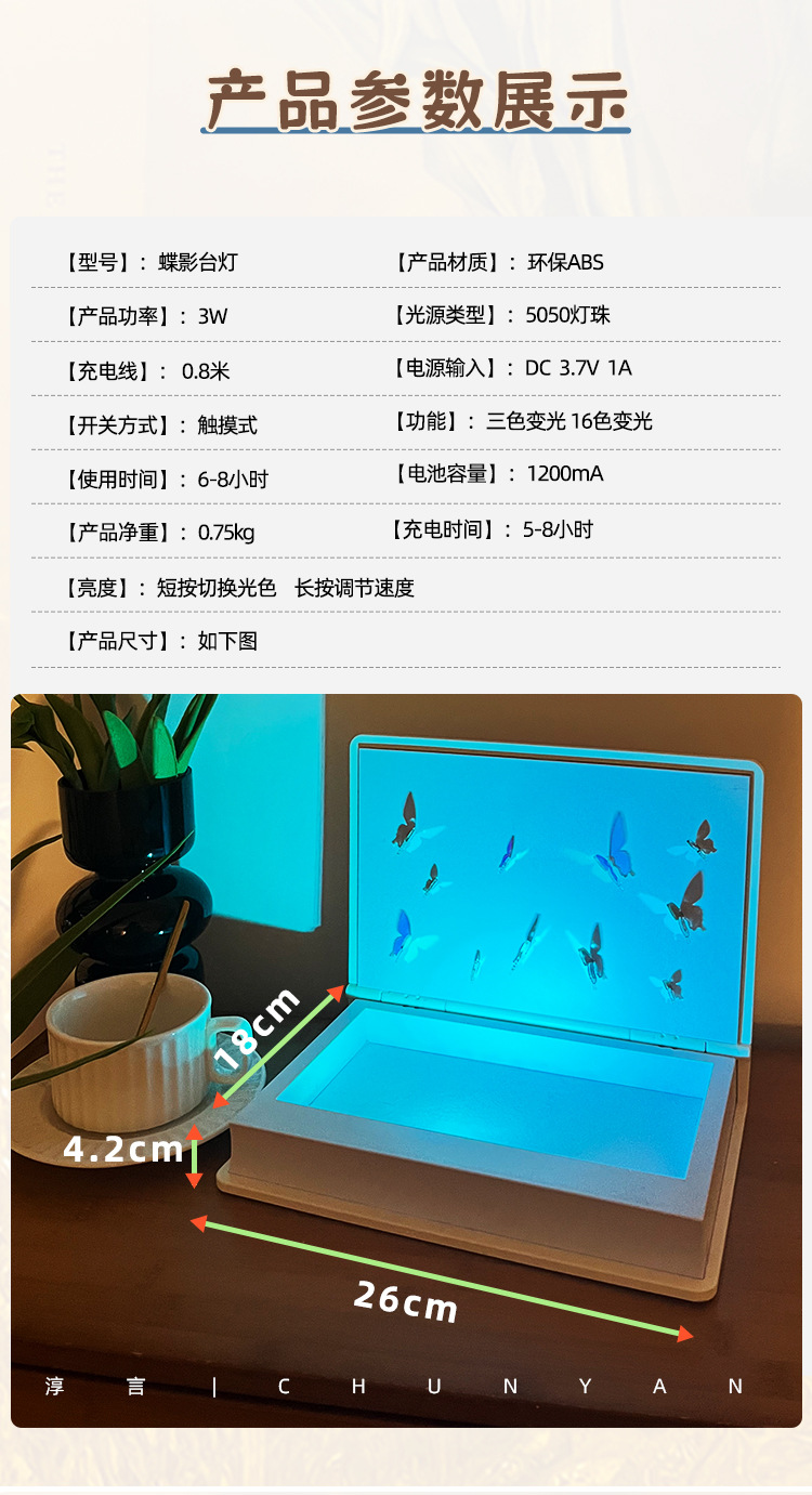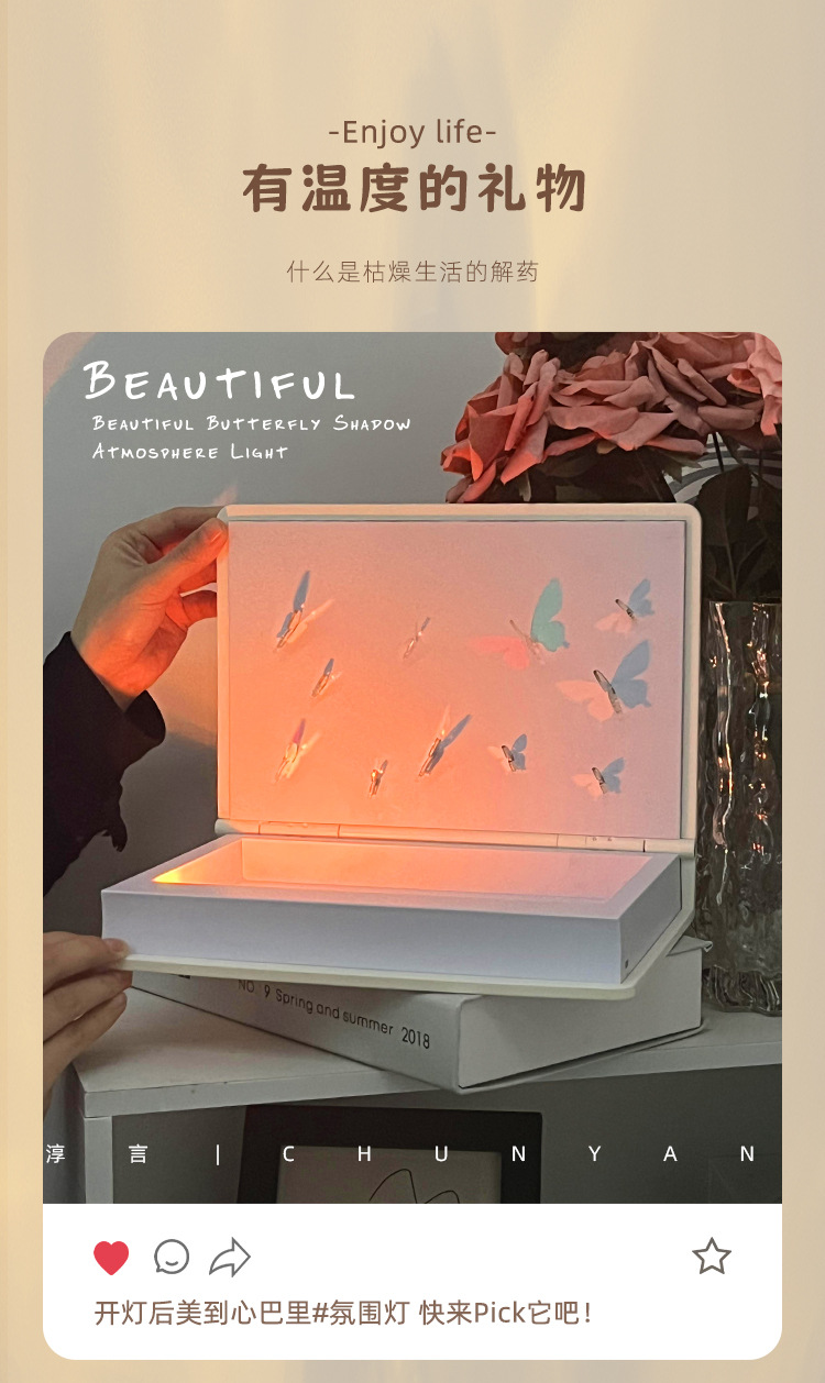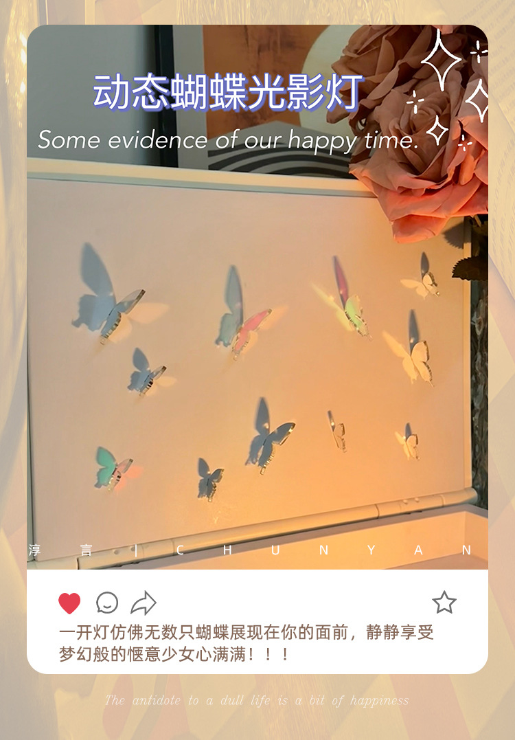 천연, 역동적 인 나비 빛과 그림자 빛 창조적 인 침대 옆 헤드 램프 새해 낭만적 인 선물 책 밤 빛에