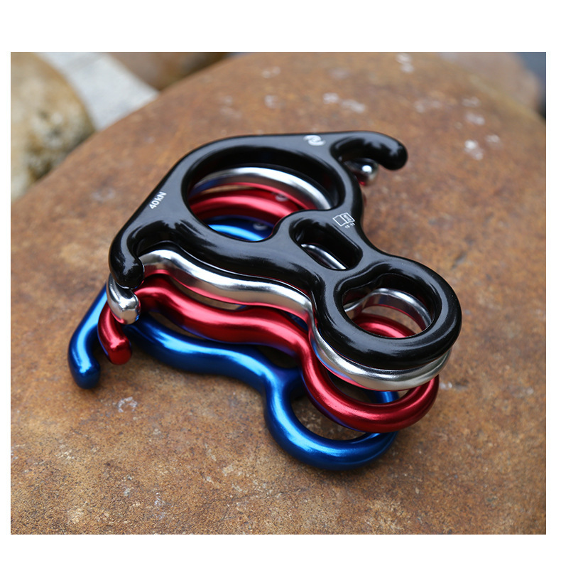 航空铝救援八字环下降器,具有下降过程中的打结悬停功能,牛角带耳8字环下降器,拉力:32KN。质量放心!