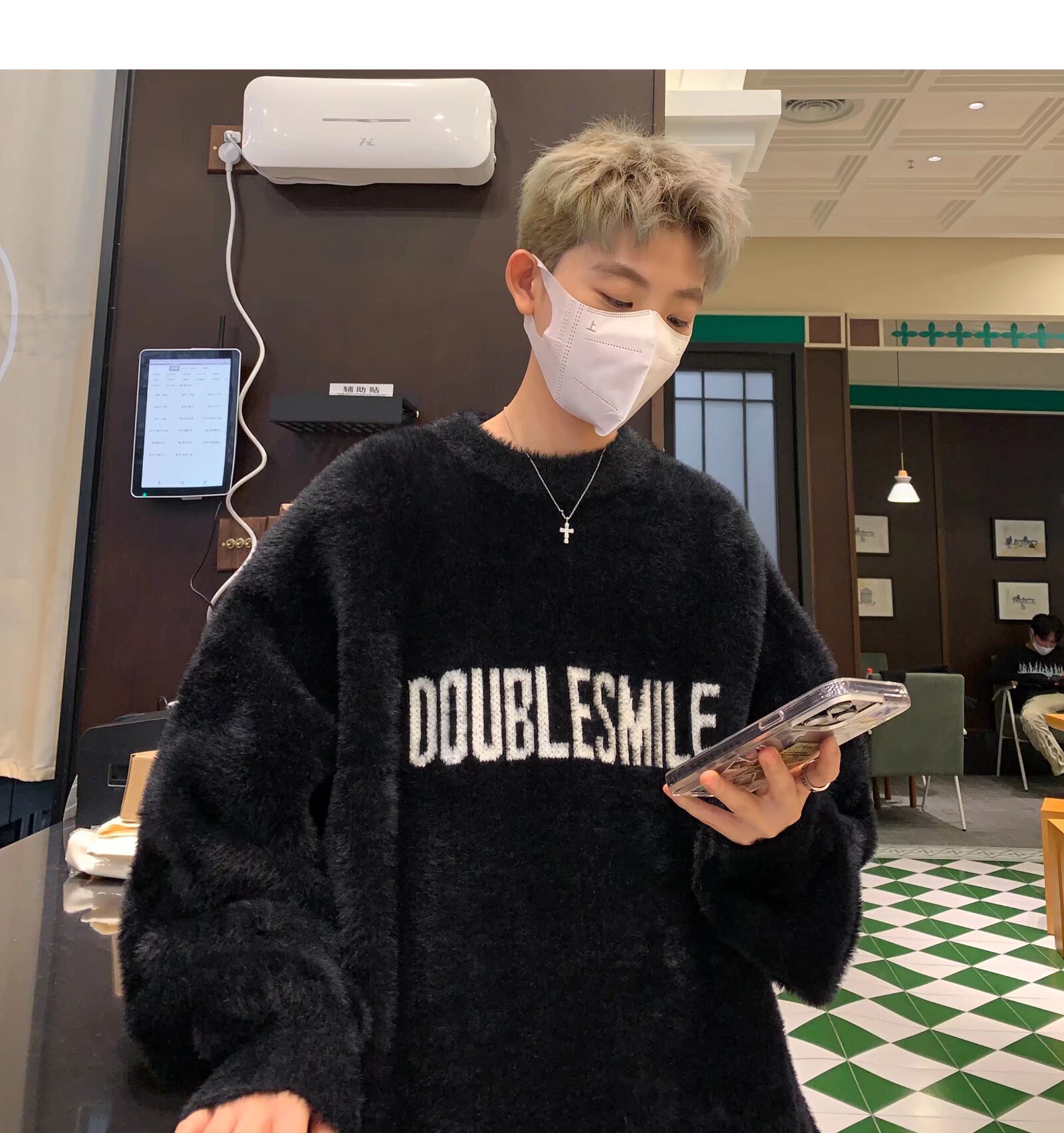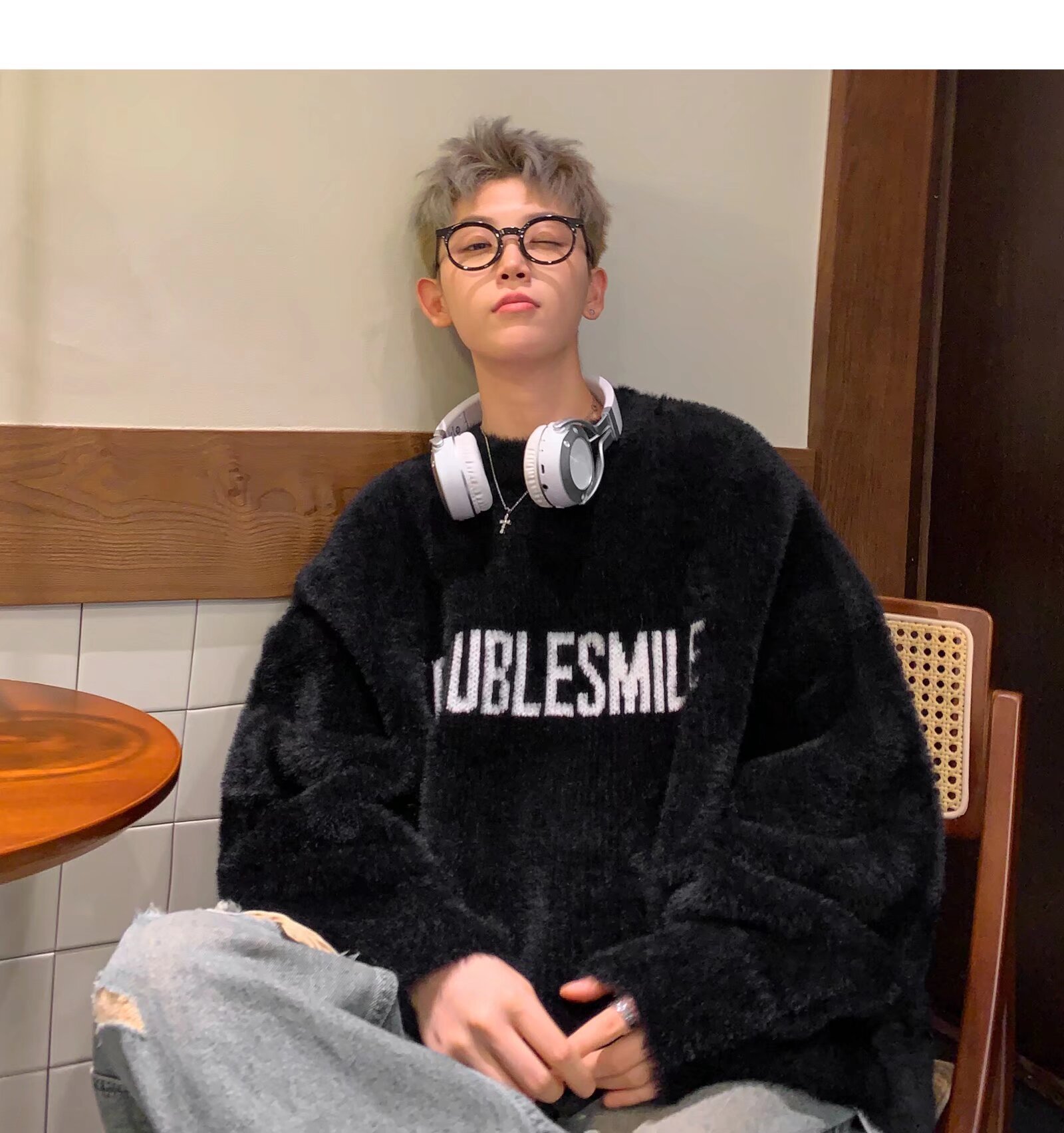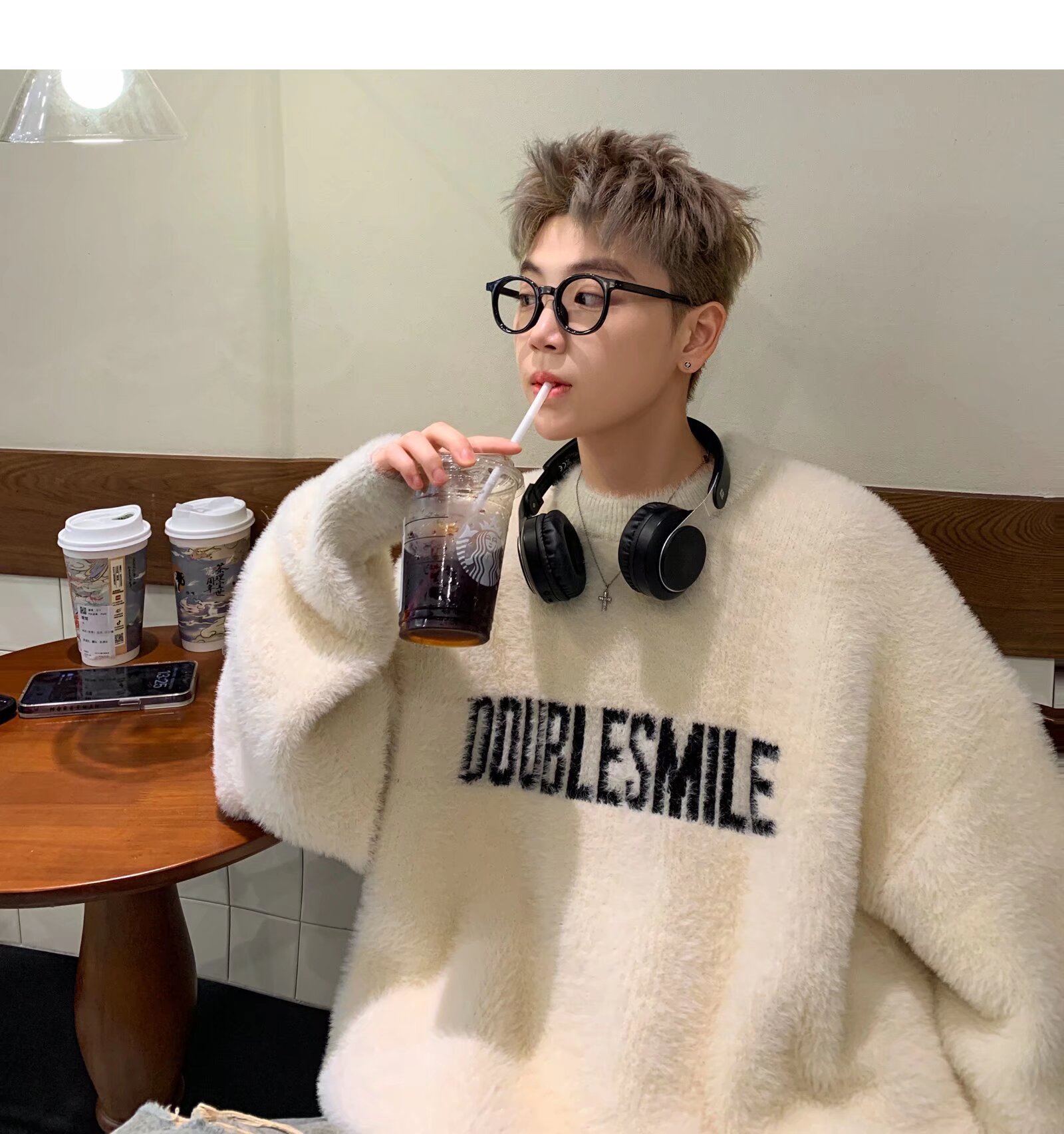 가을과 겨울 새로운 모피 트렌디 브랜드 편지 스웨터 남자 커플 스웨터 재킷 라운드 넥 와이드 패션 학생 따뜻한