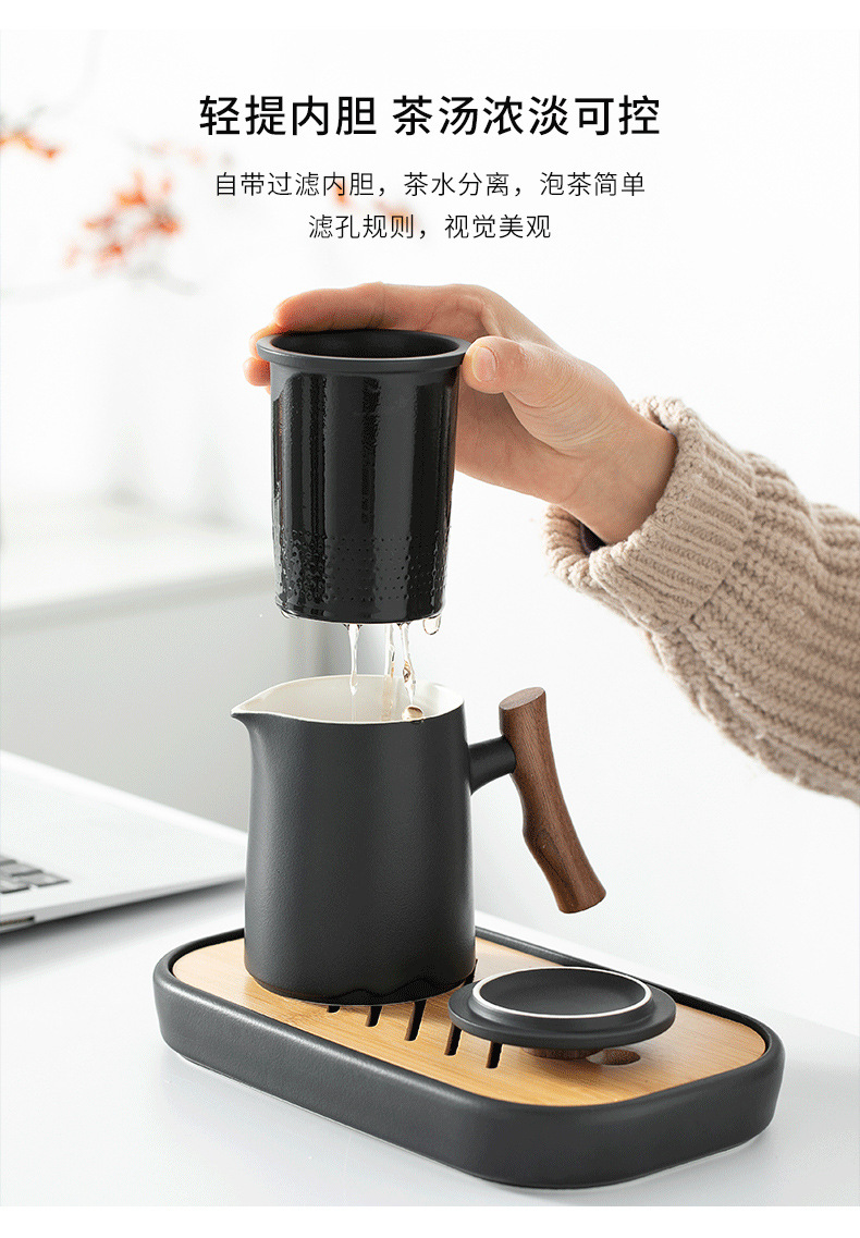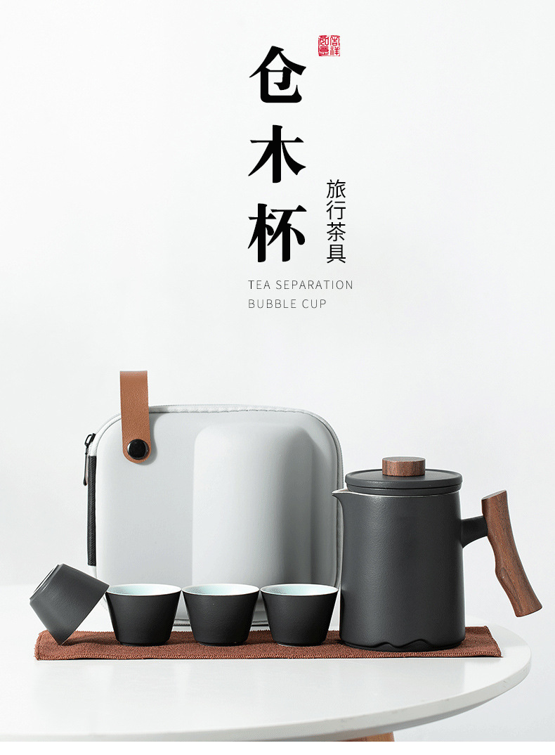 휴대용 여행 차 세트 작은 세트 Cangmu 급행 컵 야외 장비 캠핑 주전자 차 컵 간단한 나무 손잡이