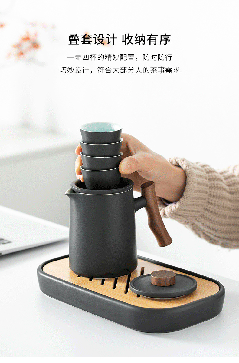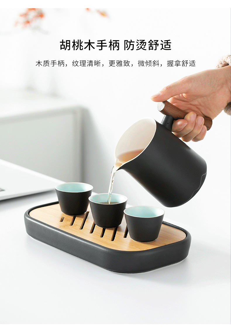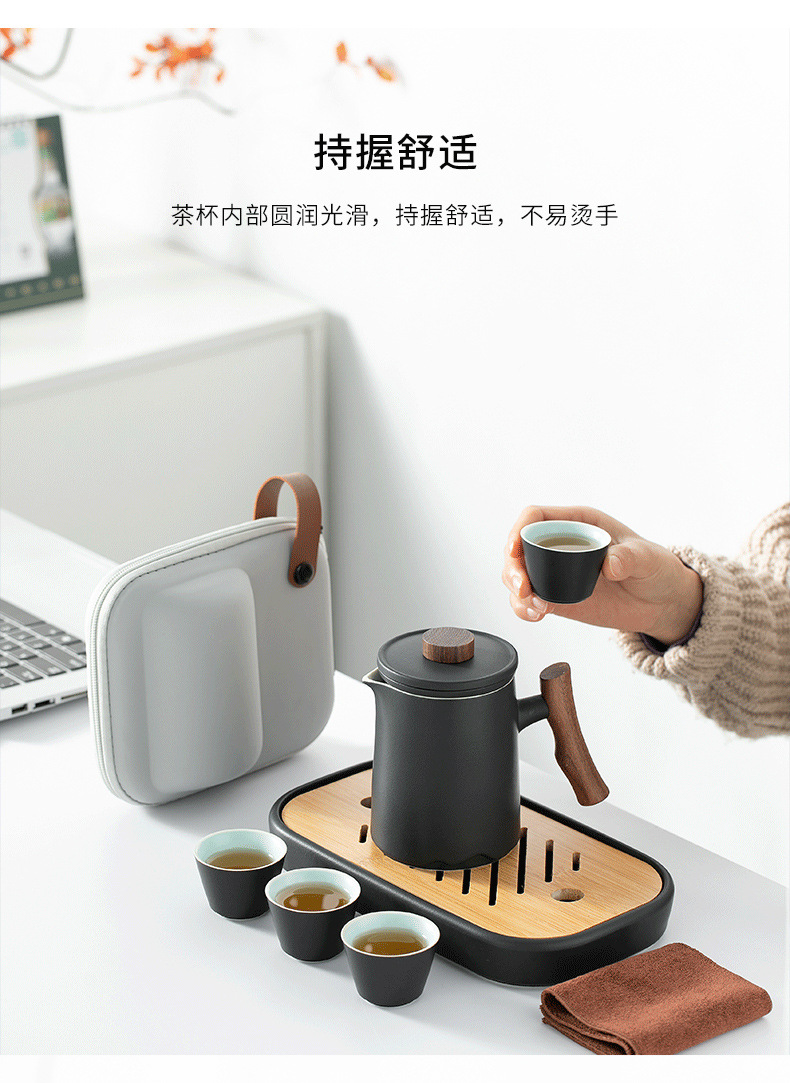 휴대용 여행 차 세트 작은 세트 Cangmu 급행 컵 야외 장비 캠핑 주전자 차 컵 간단한 나무 손잡이스토어 가기