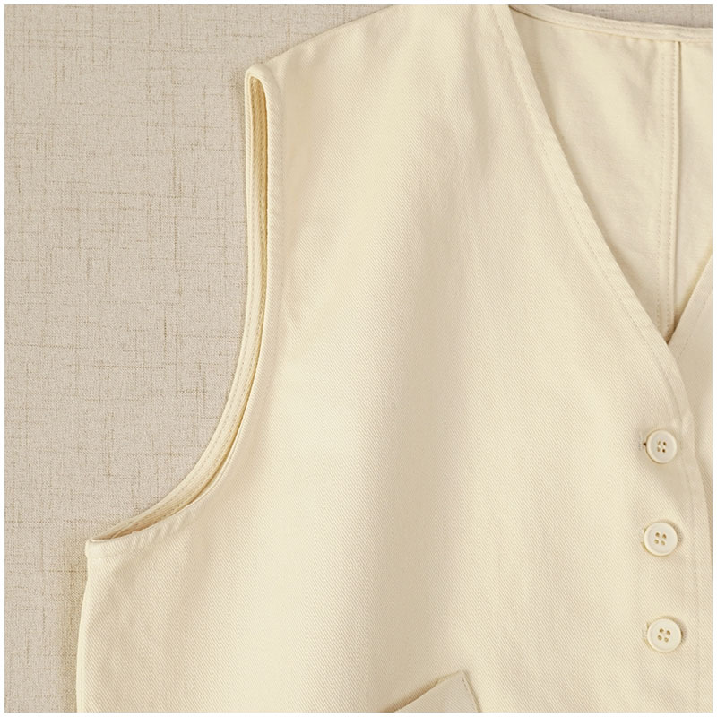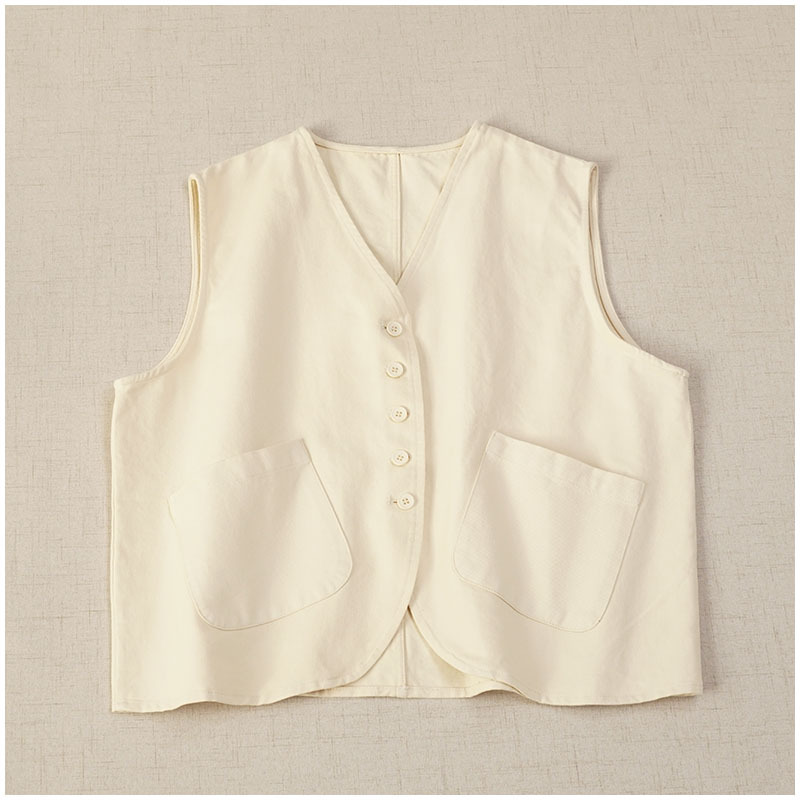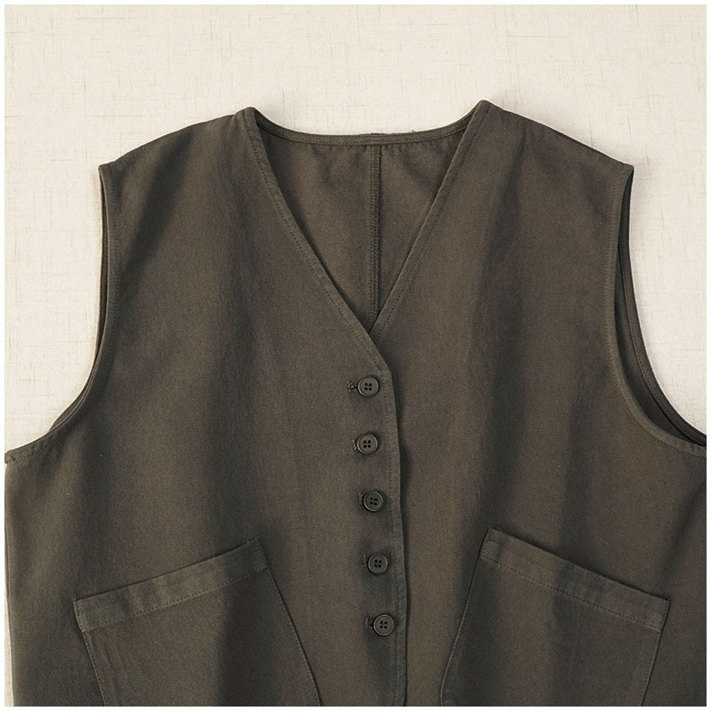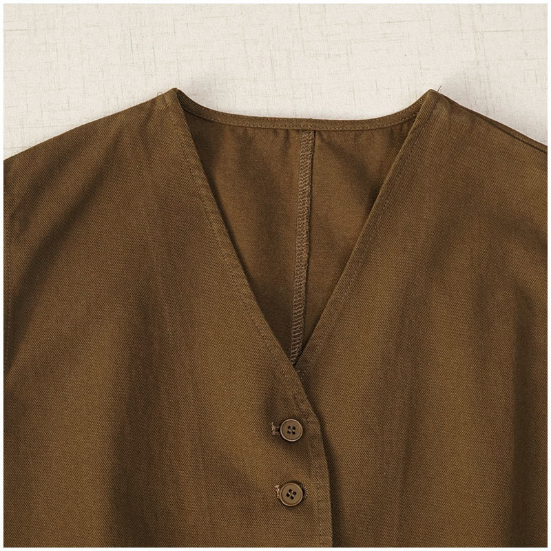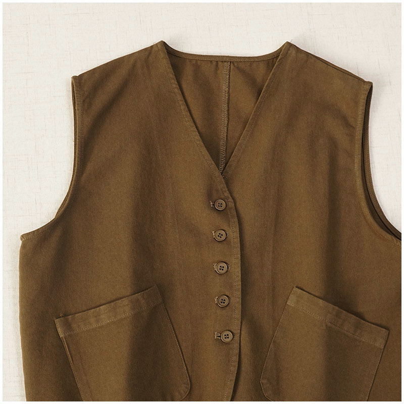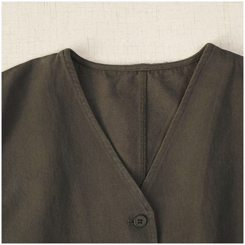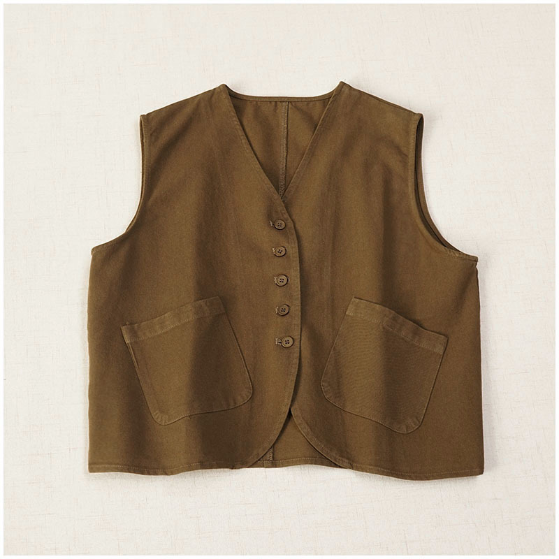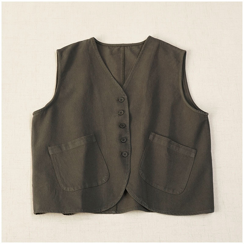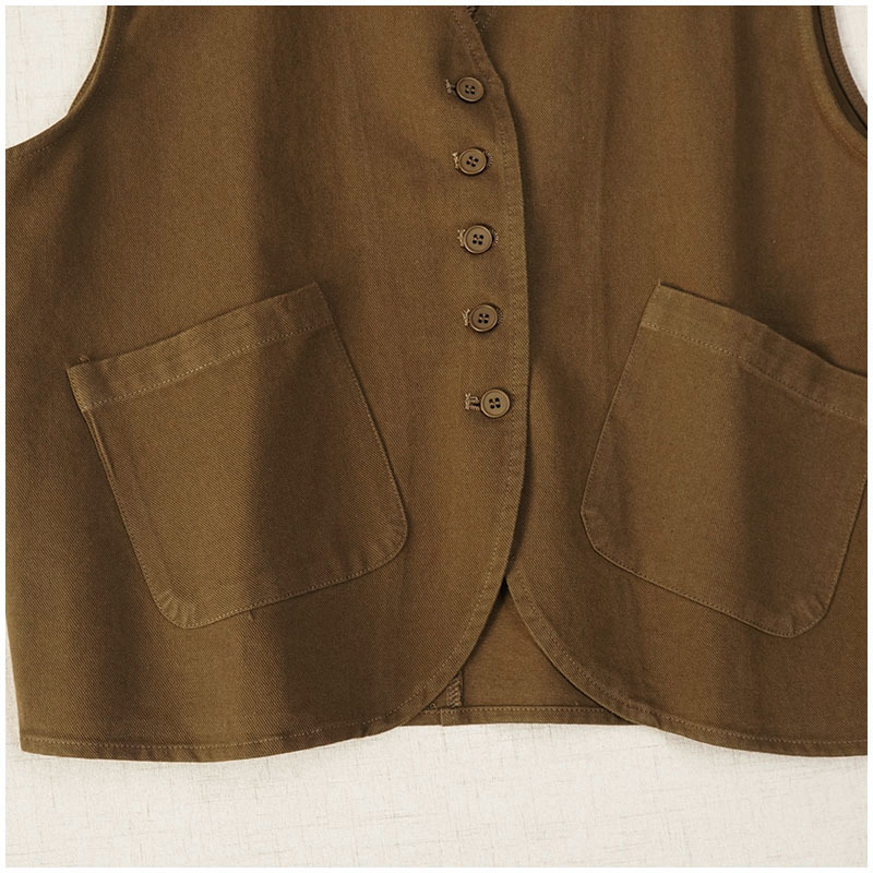 일본식 간단한 올 매치 V 넥 싱글 브레스트 패치 백 외부 조끼 예술적 슬리밍 느슨한면 스택 조끼 여성