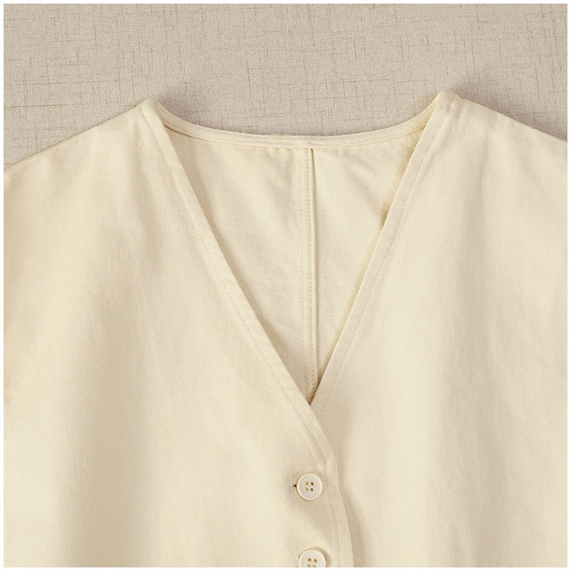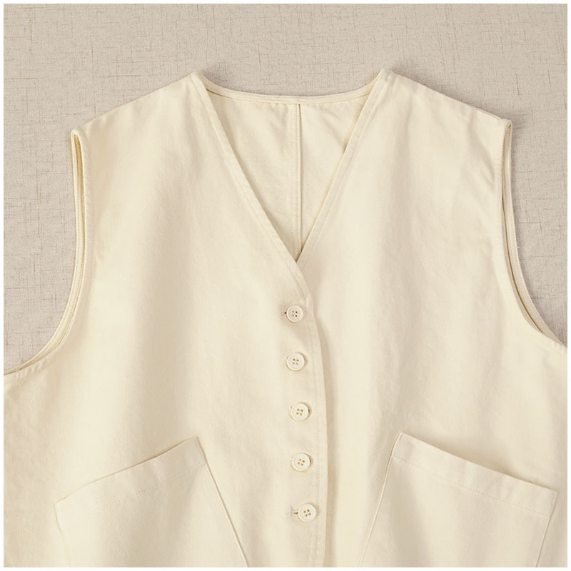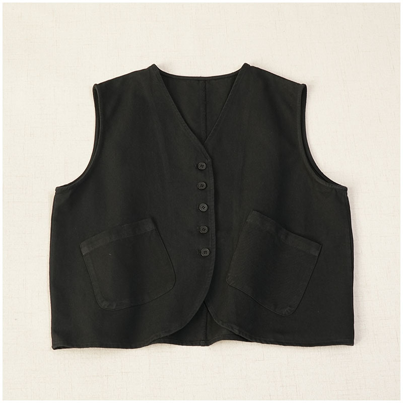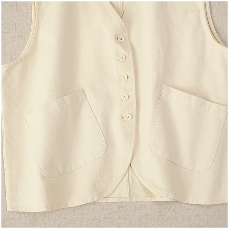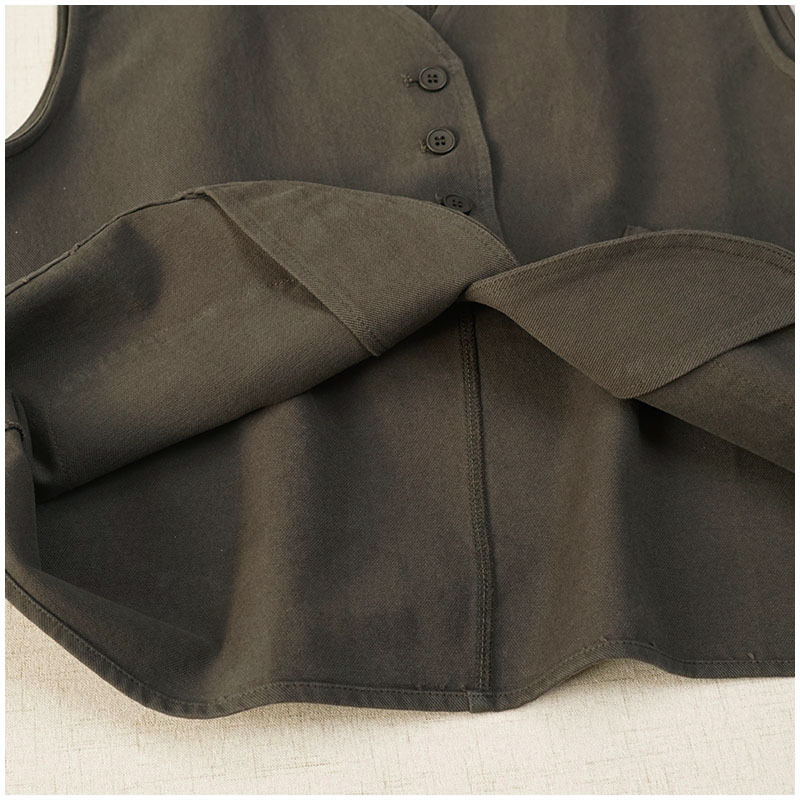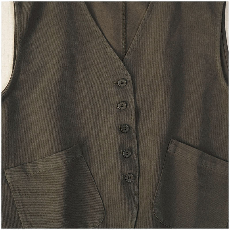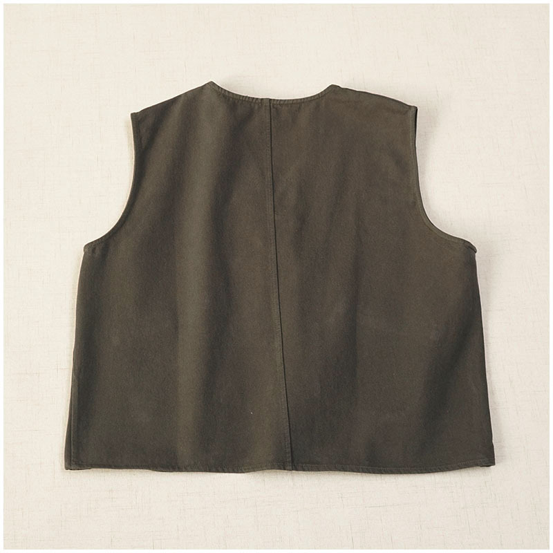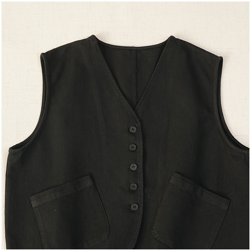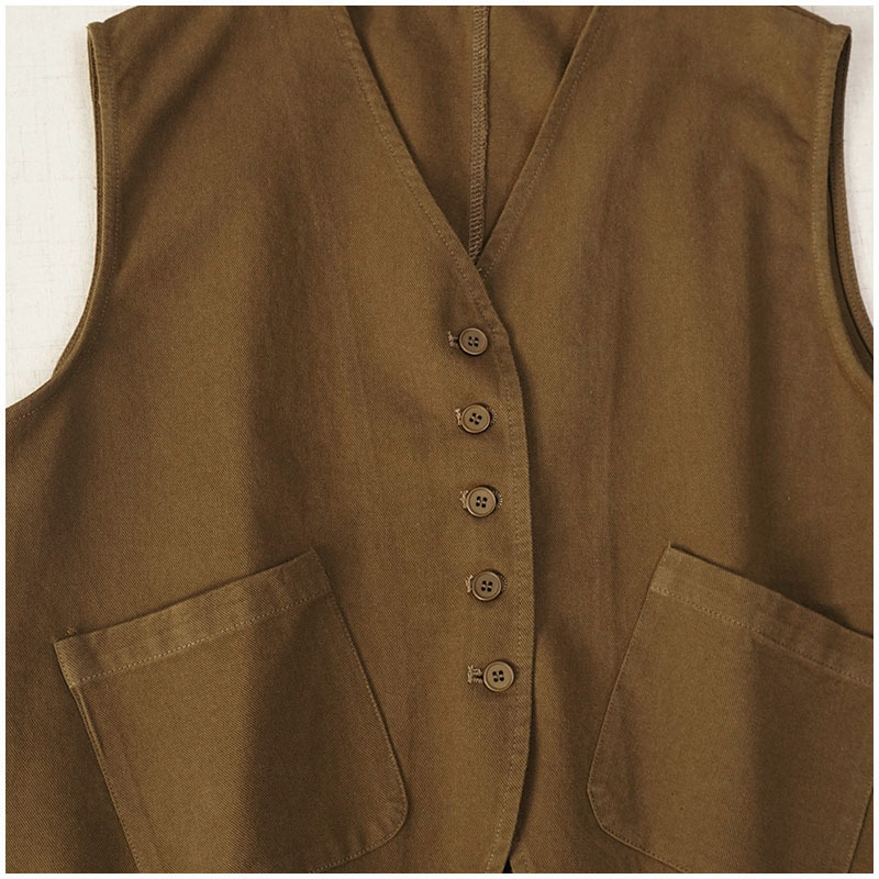 일본식 간단한 올 매치 V 넥 싱글 브레스트 패치 백 외부 조끼 예술적 슬리밍 느슨한면 스택 조끼 여성