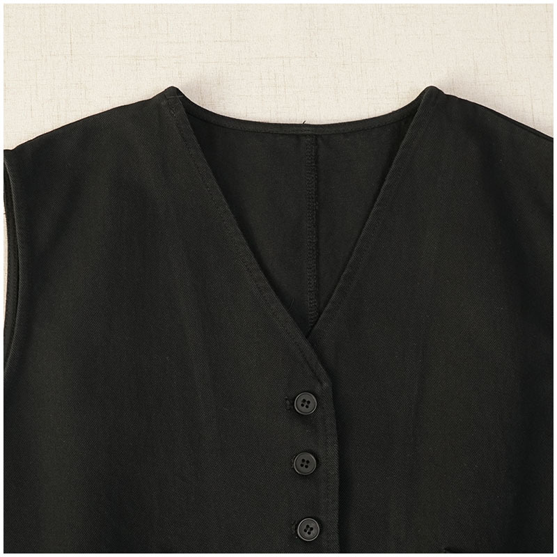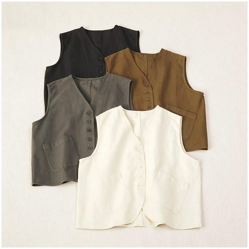 일본식 간단한 올 매치 V 넥 싱글 브레스트 패치 백 외부 조끼 예술적 슬리밍 느슨한면 스택 조끼 여성스토어 가기