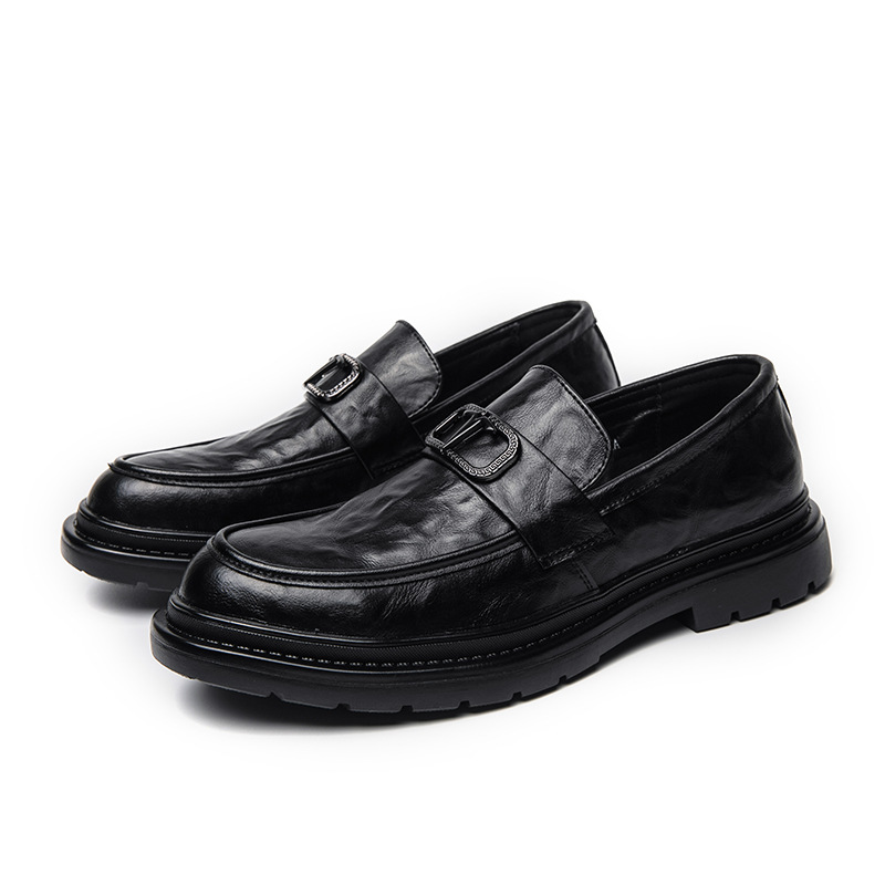 젊고 중년의 검은 발가락 가죽 신발 로퍼 손 그립 패턴 캐주얼 가죽 신발 둥근 발가락 남성 신발 슬립 온 운전 신발 남성