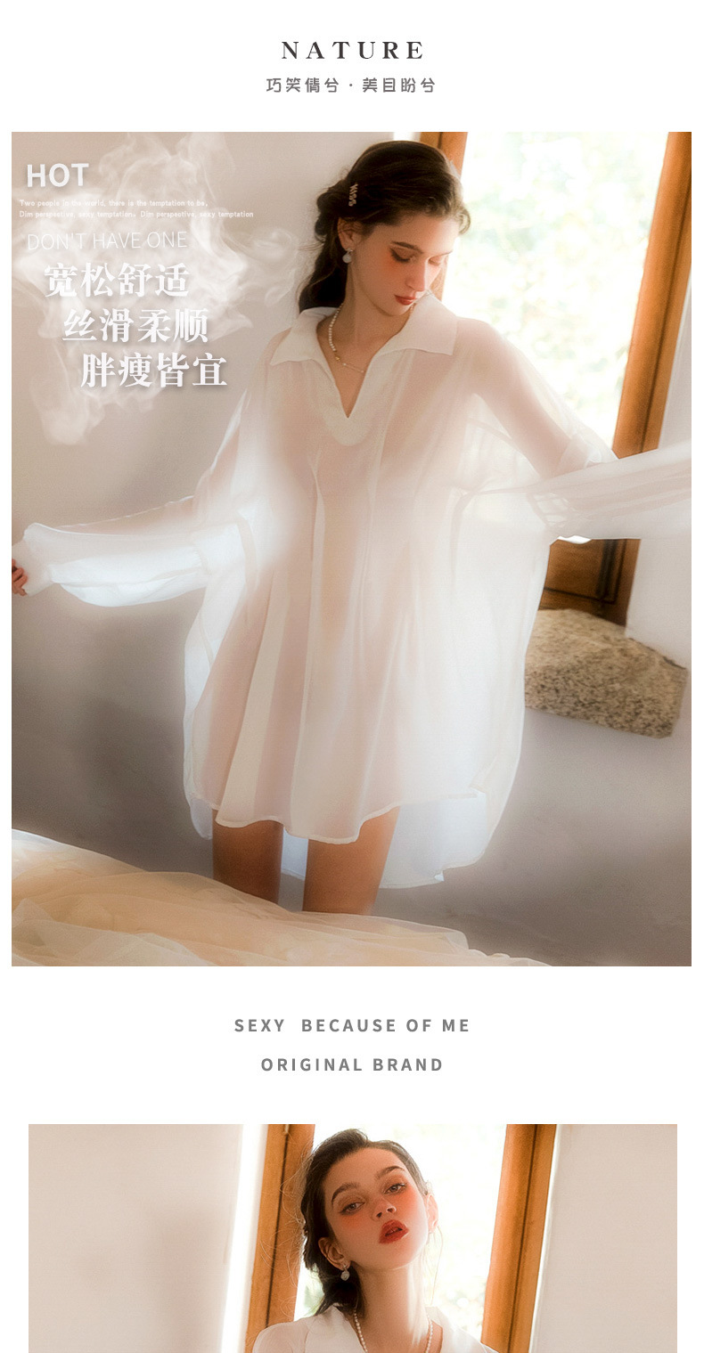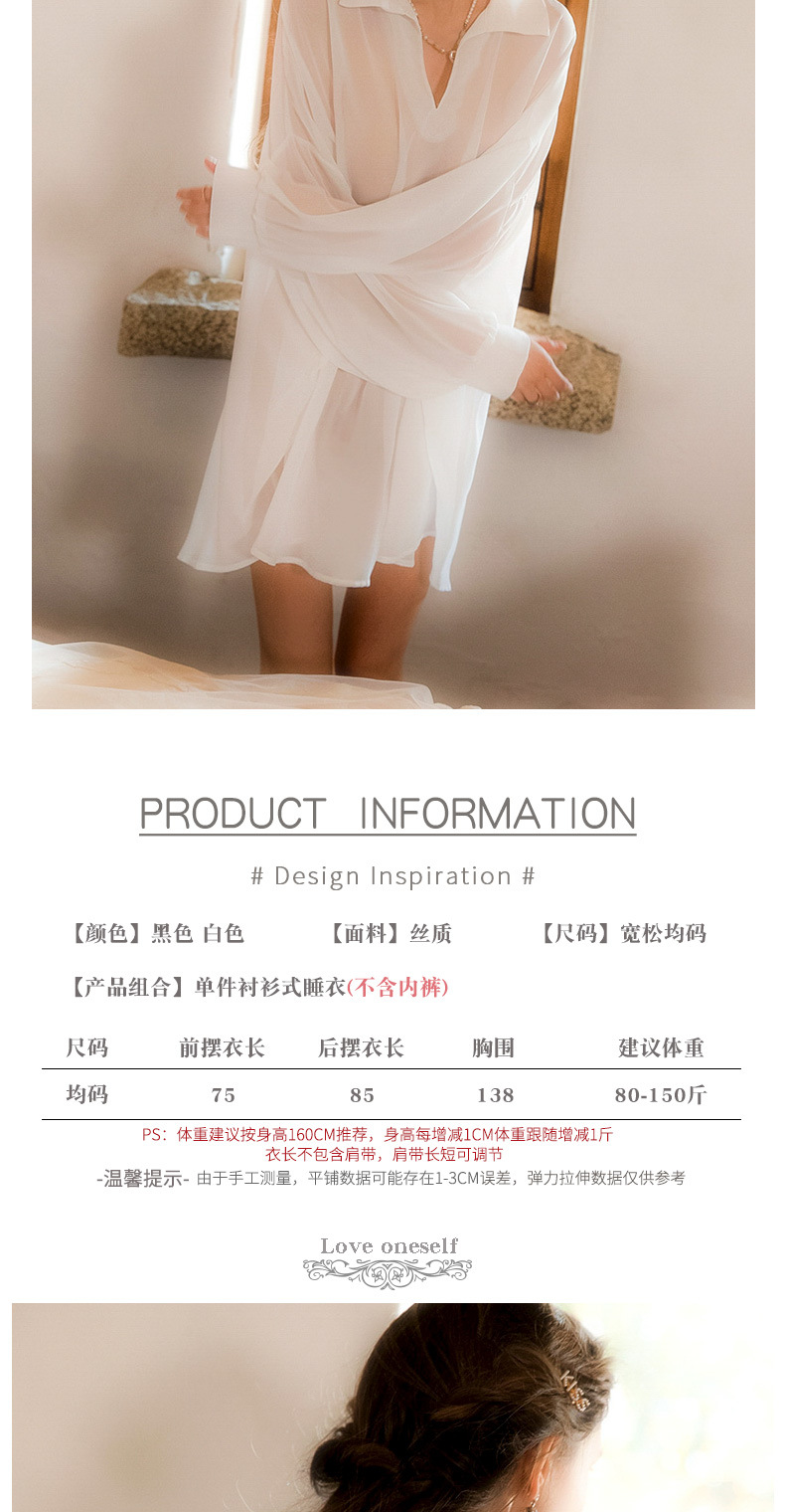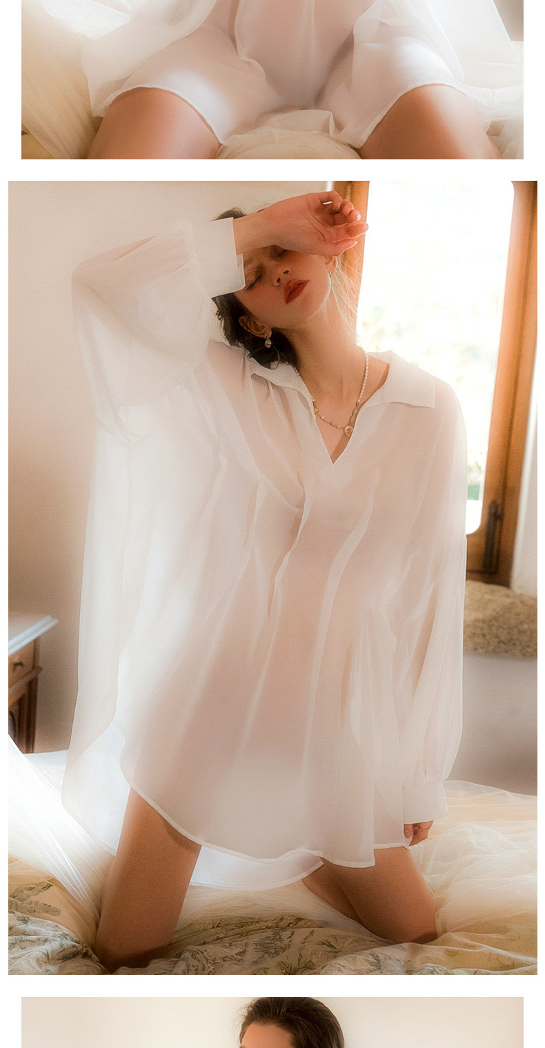 시폰 타이트한 허리 남자 친구 스타일 셔츠 여성용 섹시한 잠옷 투명 나이트 드레스 짧은 플러스 사이즈 섹시한 란제리 긴 소매 9689스토어 가기
