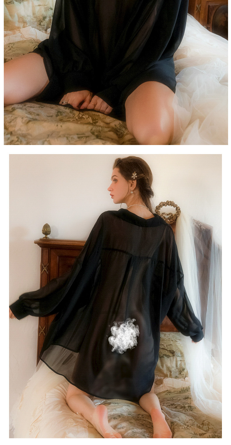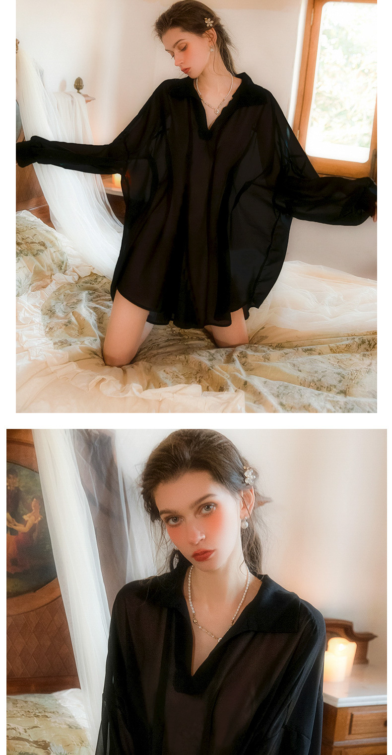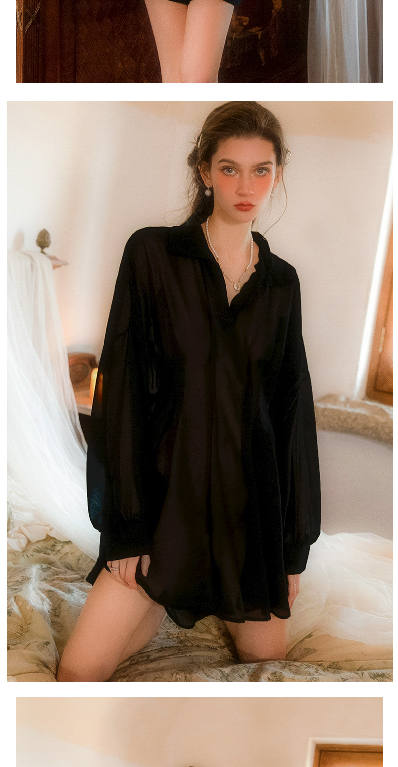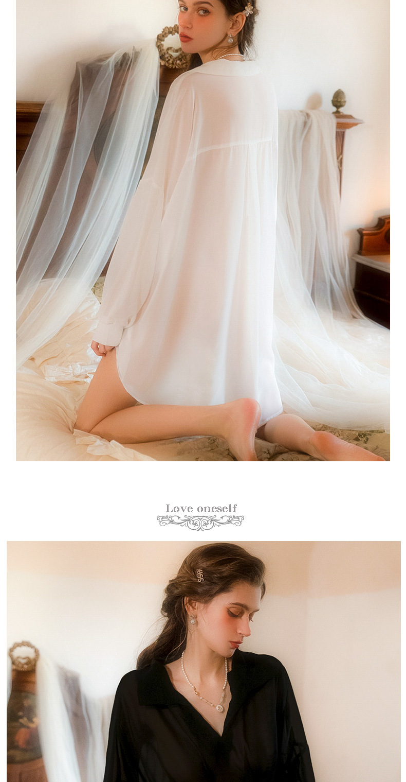 시폰 타이트한 허리 남자 친구 스타일 셔츠 여성용 섹시한 잠옷 투명 나이트 드레스 짧은 플러스 사이즈 섹시한 란제리 긴 소매 9689스토어 가기