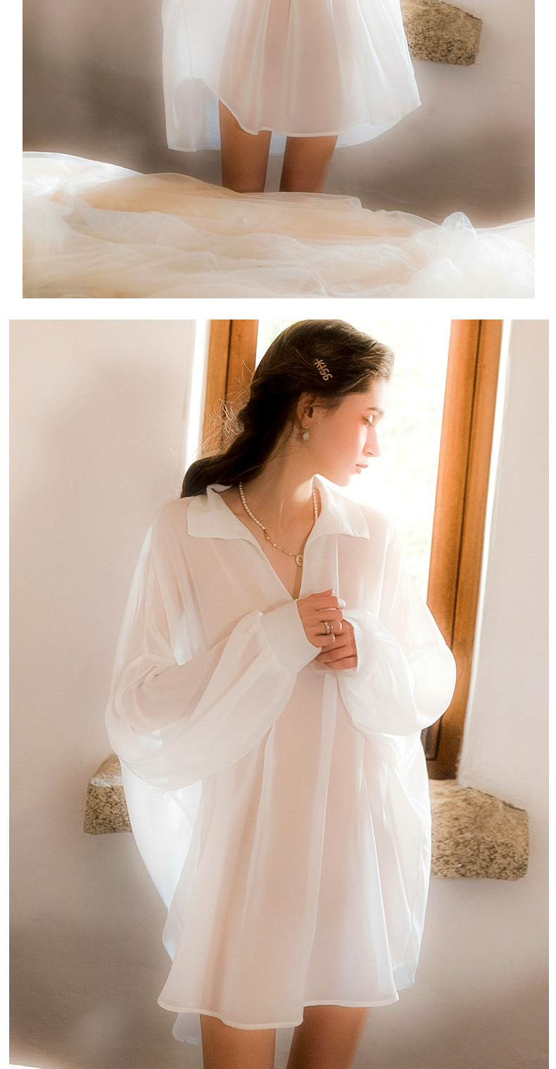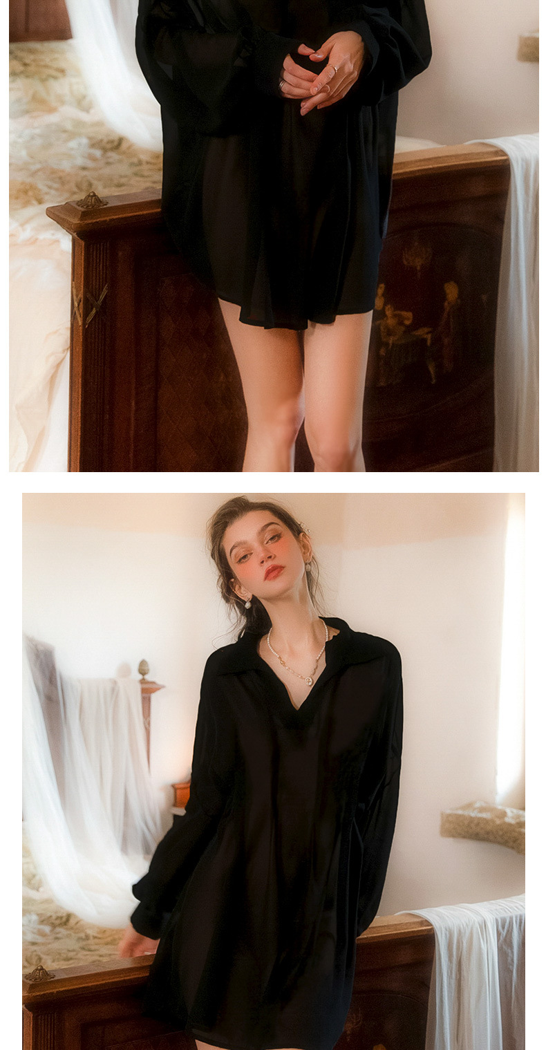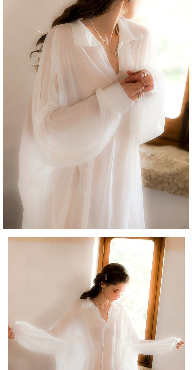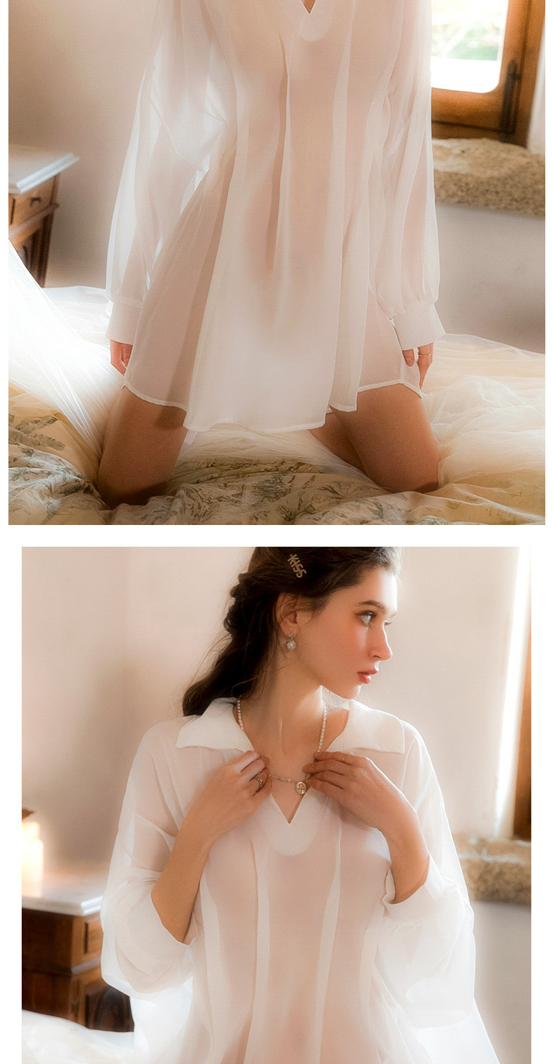 시폰 타이트한 허리 남자 친구 스타일 셔츠 여성용 섹시한 잠옷 투명 나이트 드레스 짧은 플러스 사이즈 섹시한 란제리 긴 소매 9689