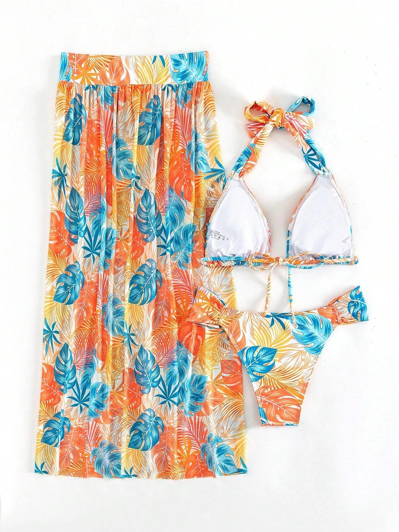 24 새로운 메쉬 인쇄 비키니 3 조각 세트 유럽과 미국의 섹시한 해변 분할 수영복 분할 스커트 OM2420