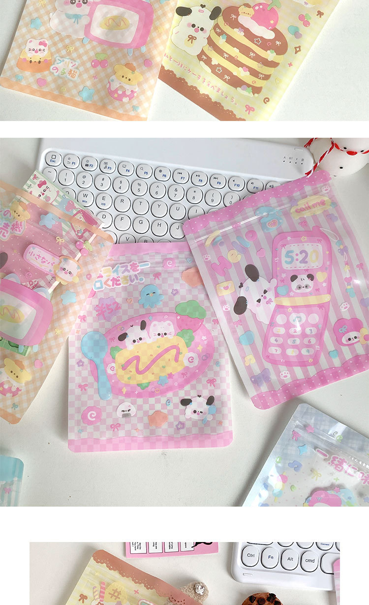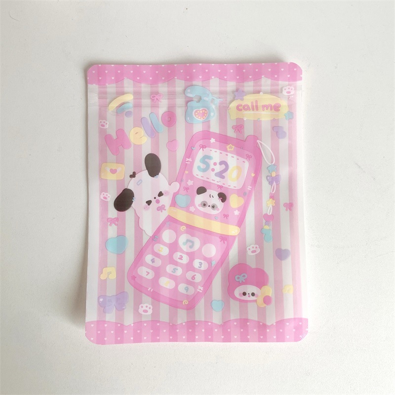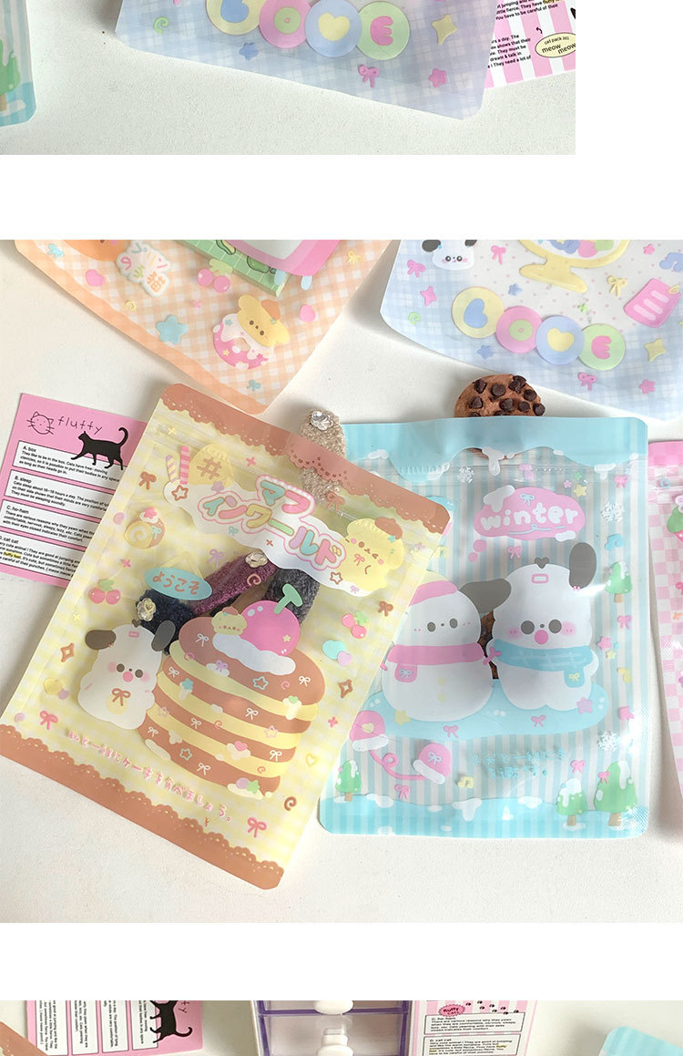 귀여운 만화 강아지 자기 밀봉 가방 보석 스낵 선물 비스킷 마스크 봉인 된 가방 검은 펜 사탕 자체 밀봉 가방