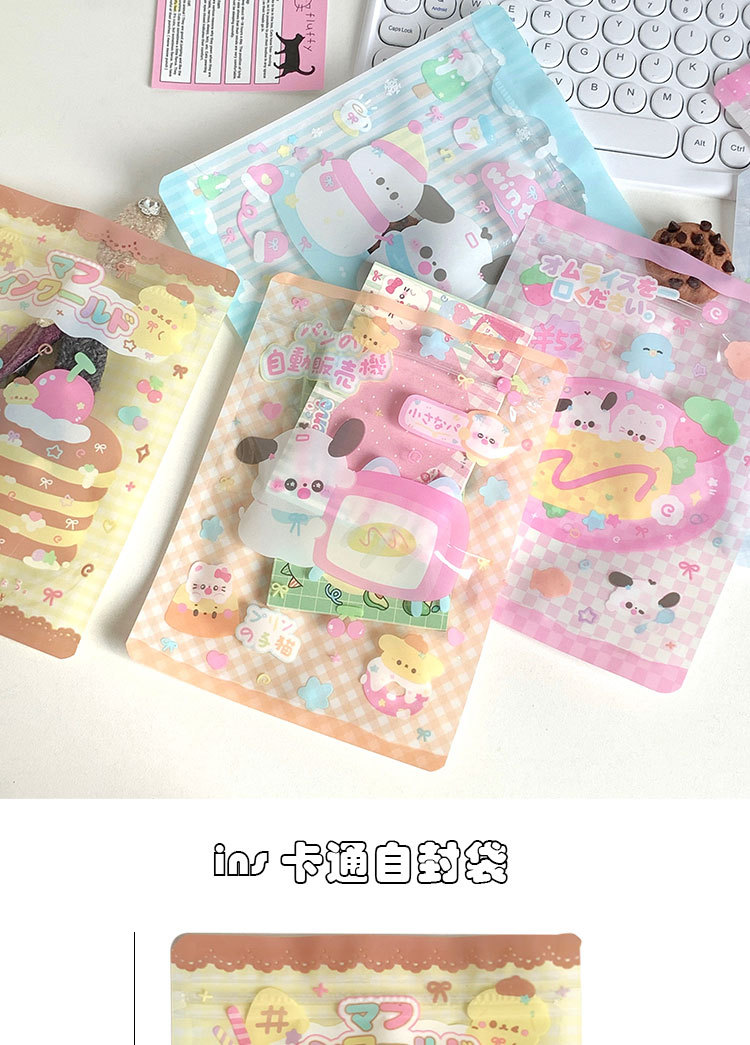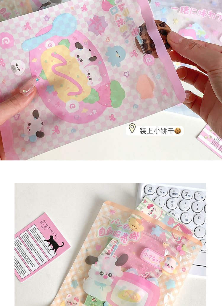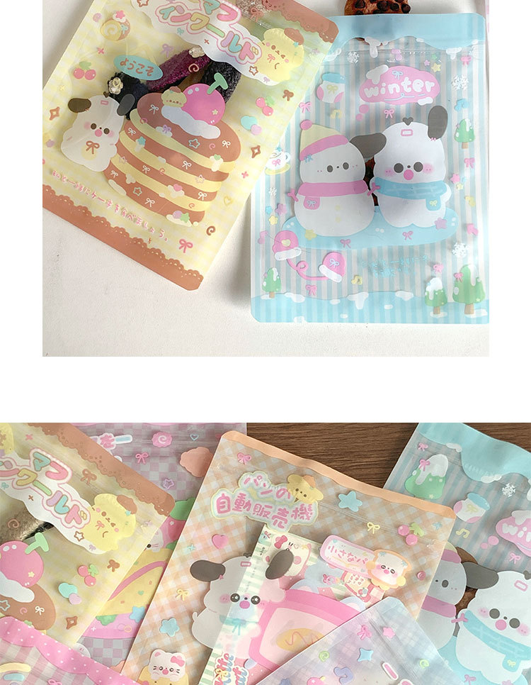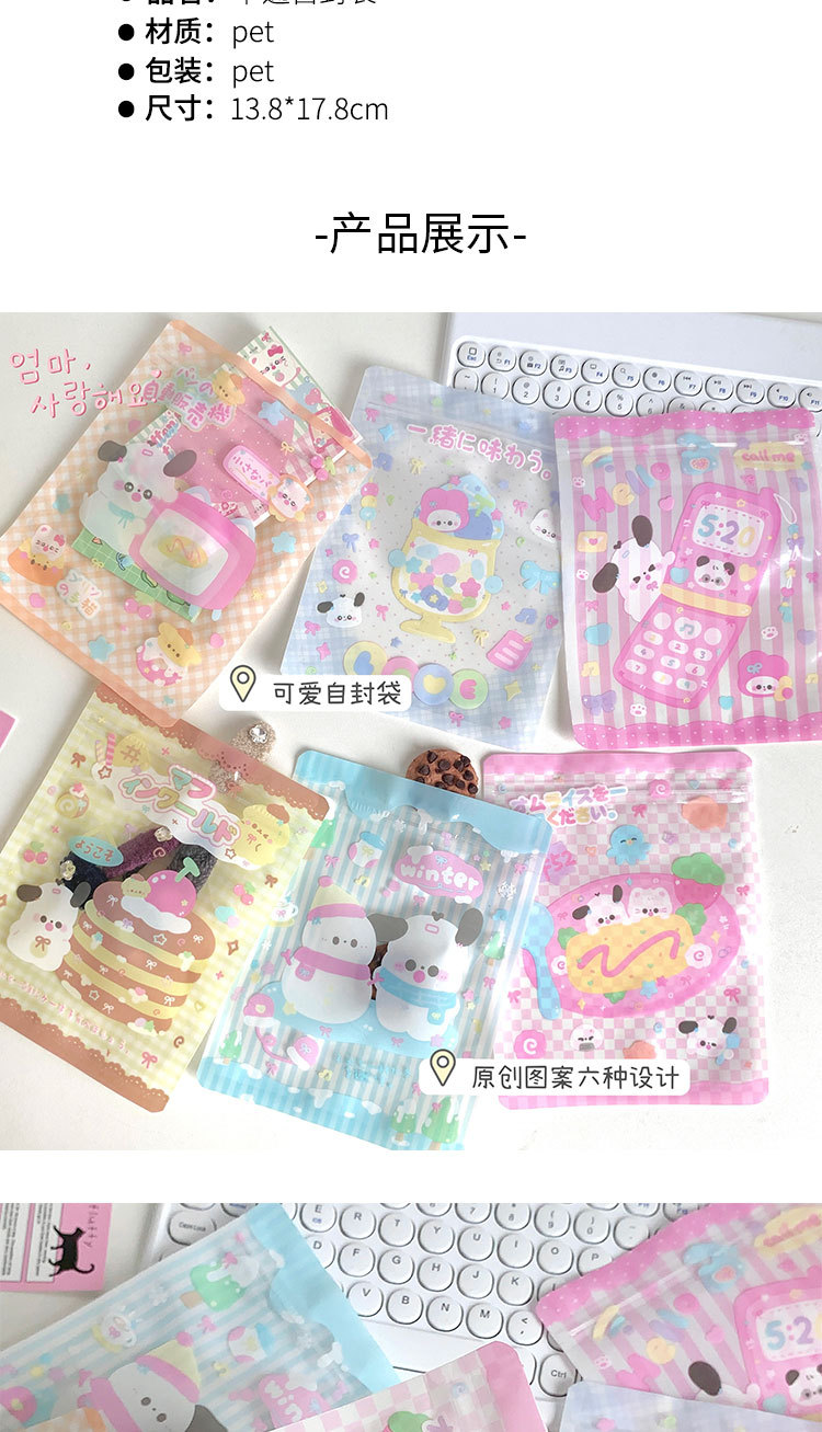 귀여운 만화 강아지 자기 밀봉 가방 보석 스낵 선물 비스킷 마스크 봉인 된 가방 검은 펜 사탕 자체 밀봉 가방스토어 가기