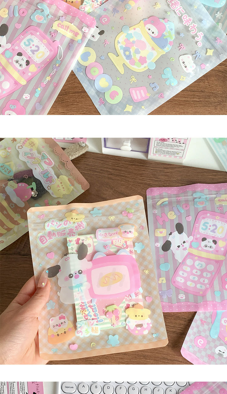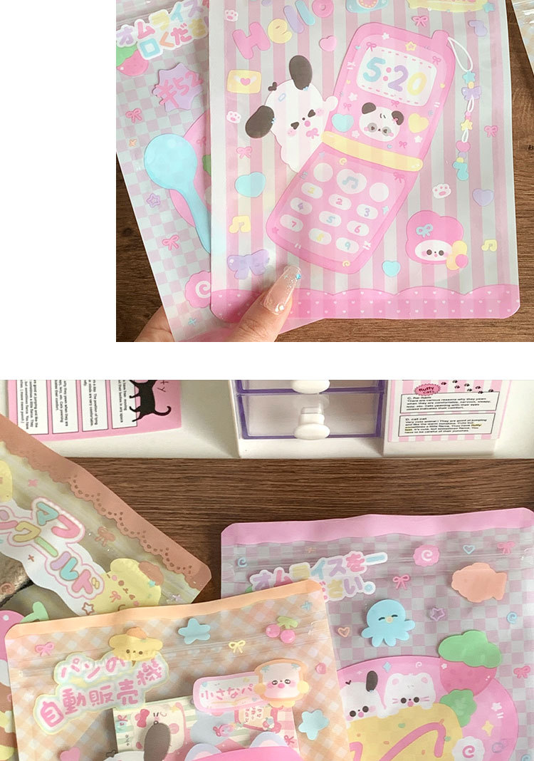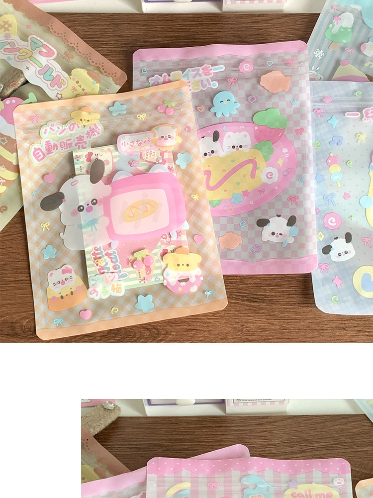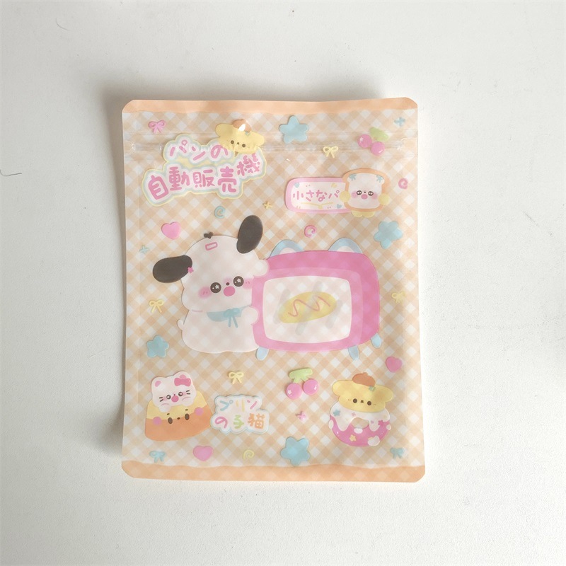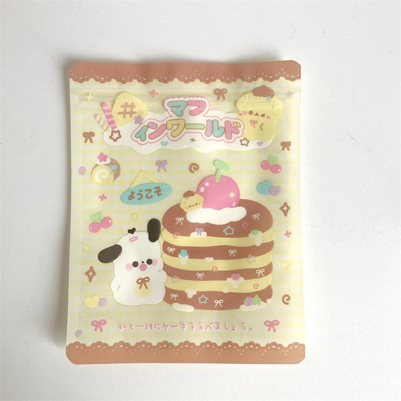 귀여운 만화 강아지 자기 밀봉 가방 보석 스낵 선물 비스킷 마스크 봉인 된 가방 검은 펜 사탕 자체 밀봉 가방스토어 가기