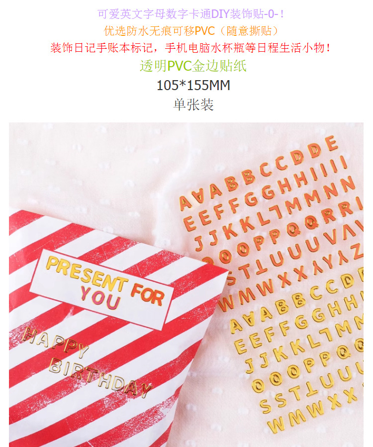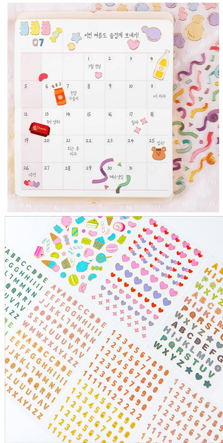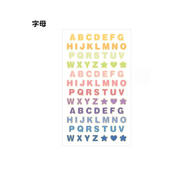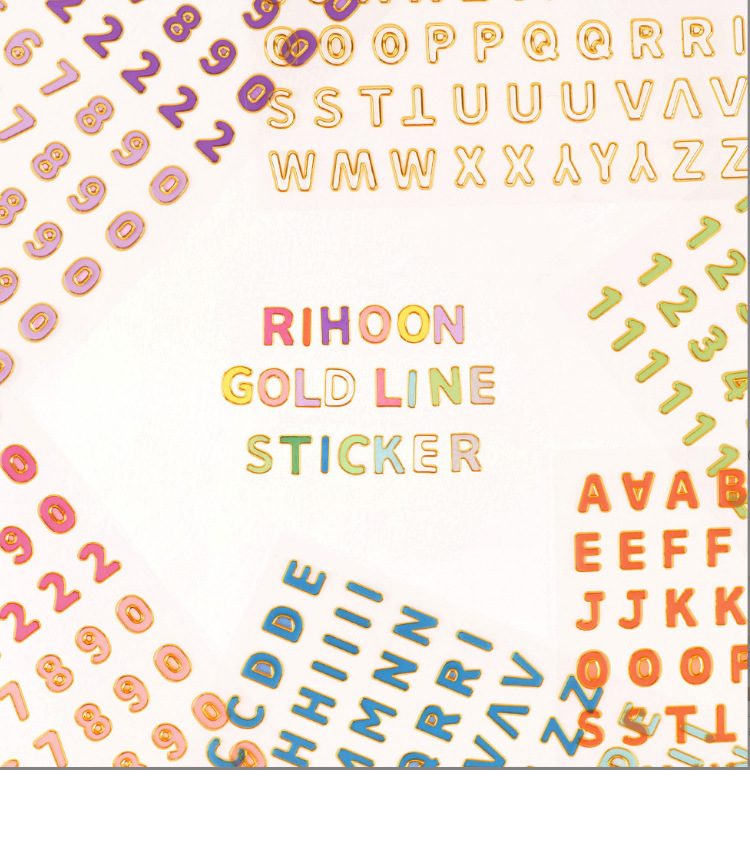 한국 문구류 금테 영문자 숫자 스티커 만화 투명 DIY 수첩 장식 컬러 스티커