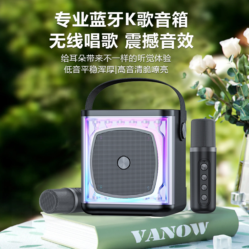 YS308 새로운 휴대용 블루투스 스피커 휴대 전화 K-노래 오디오 듀얼 무선 마이크 올인원 마이크 국경스토어 가기