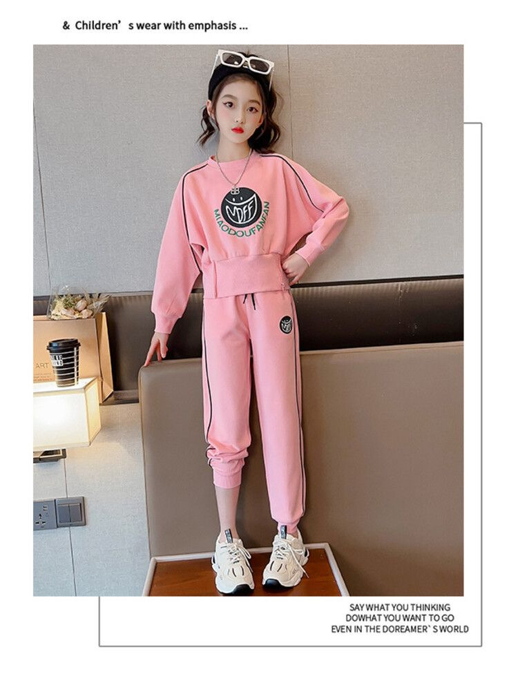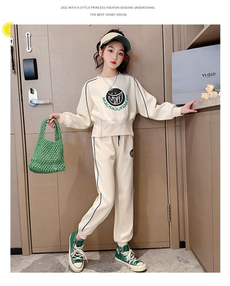 소녀 세트 2024 새로운 어린이 패션 유행 가을 미디어와 큰 어린이 인터넷 유명 패션 스웨터 투피스 세트스토어 가기