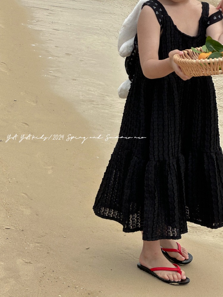 소녀 슬립 스커트 2024 봄과 여름 새로운 어린이 스티칭 우아한 케이크 스커트 간단한 스타일 긴 스커트 여름 원피스