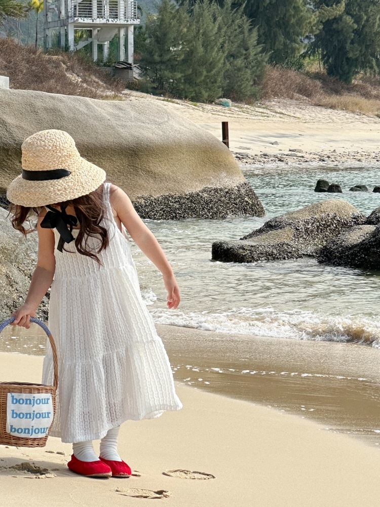 소녀 슬립 스커트 2024 봄과 여름 새로운 어린이 스티칭 우아한 케이크 스커트 간단한 스타일 긴 스커트 여름 원피스스토어 가기