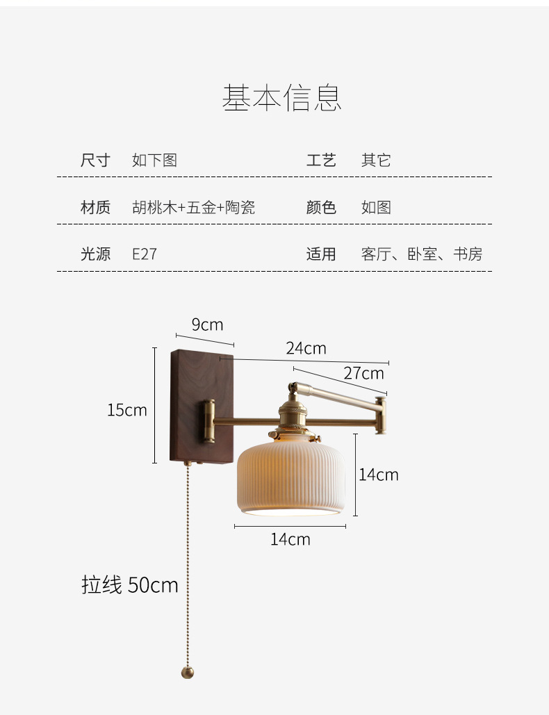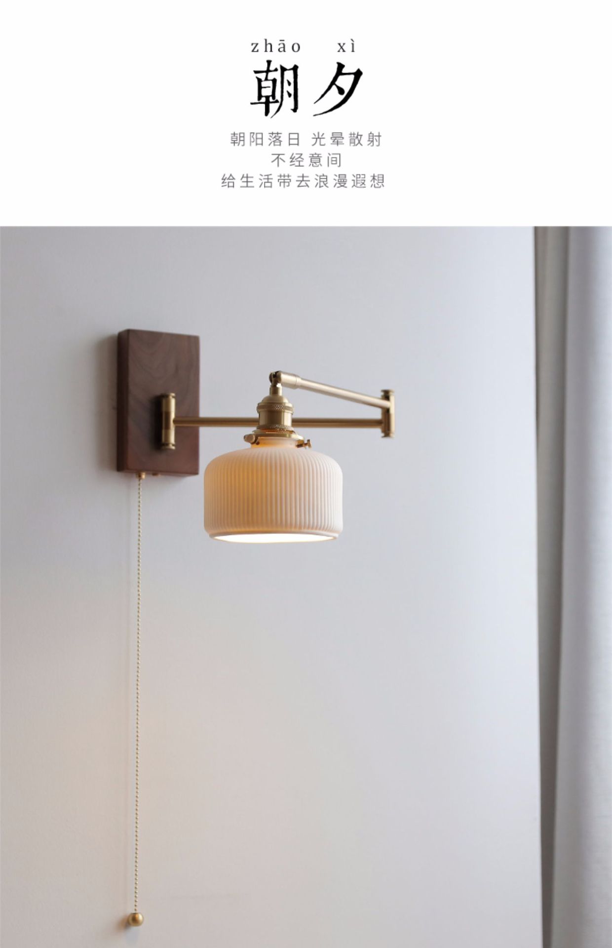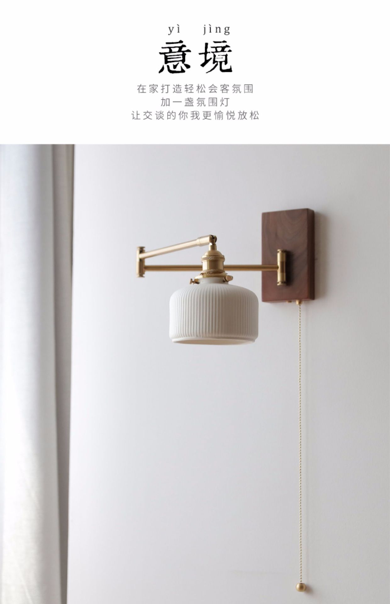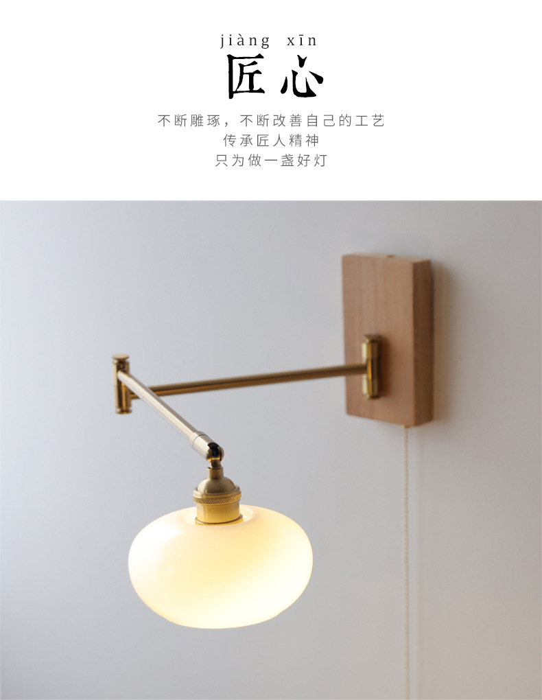 국경 간 복고풍 회전 벽 램프 일본 침대 옆 침실 디자이너 좌우 회전 가능한 긴 팔 벽 램프