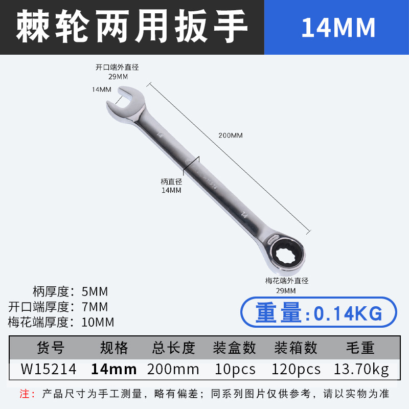 • 14mm 래칫 콤비네이션 롱 렌치(W15214)