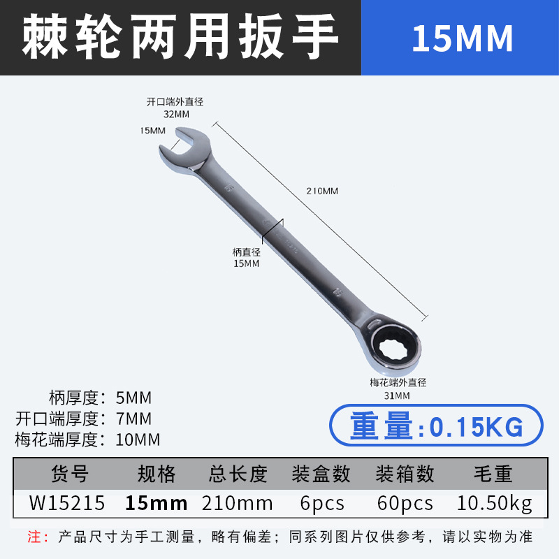 • 15mm 래칫 콤비네이션 롱 렌치(W15215)