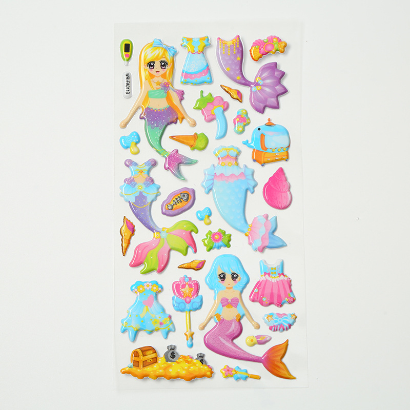 국경을 넘는 새로운 만화 인어 공주 원피스 업 스티커 DIY 원피스 3 차원 거품 스티커 도매스토어 가기