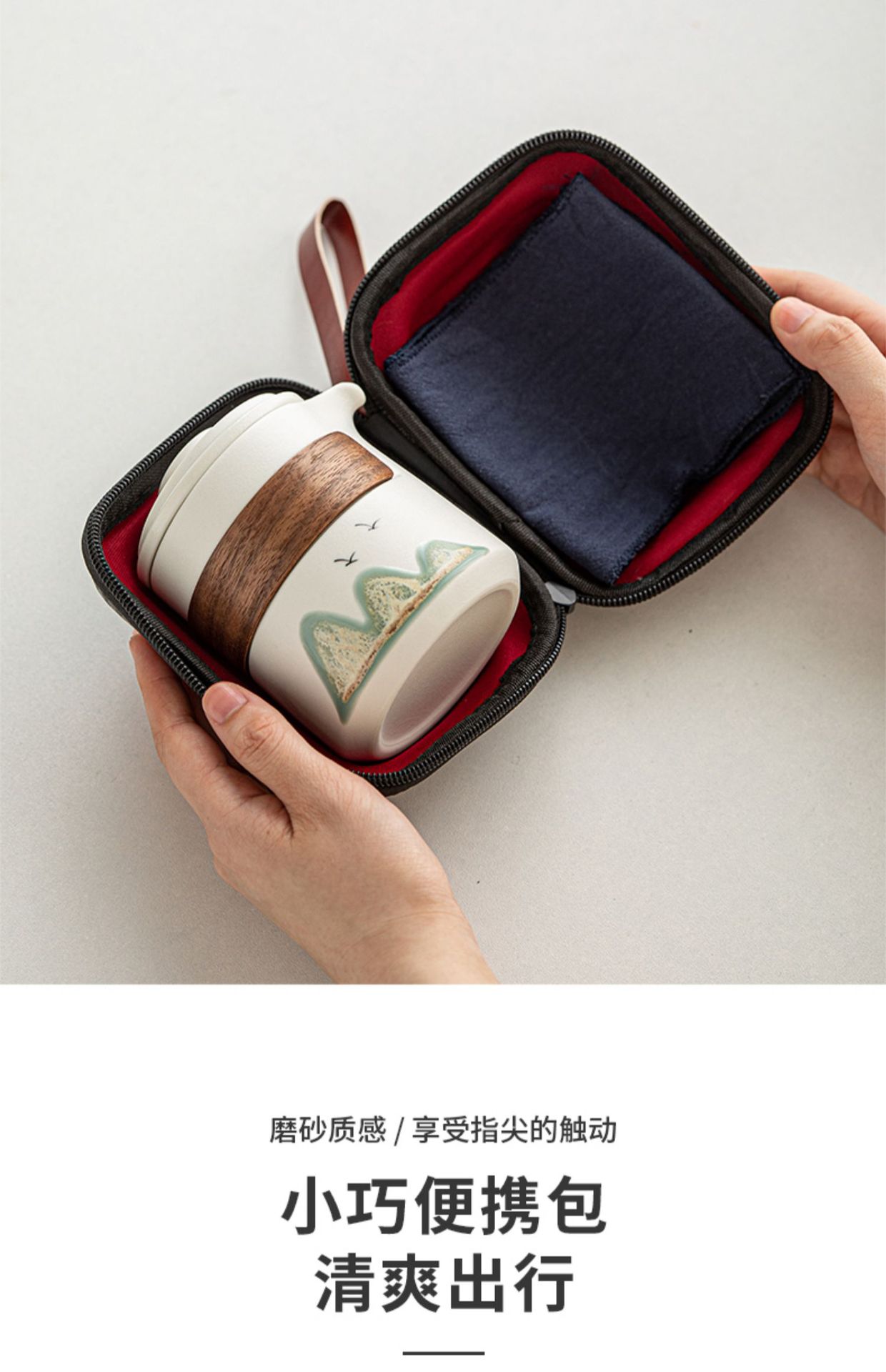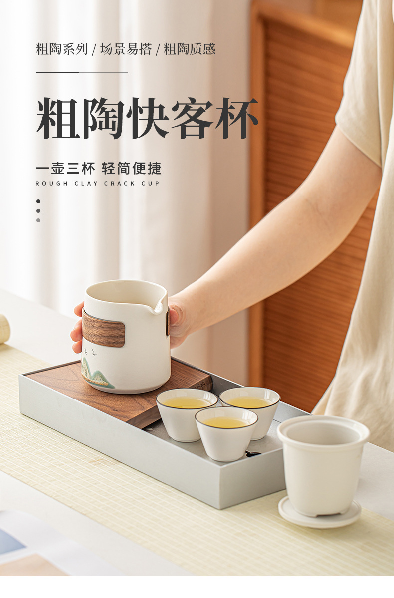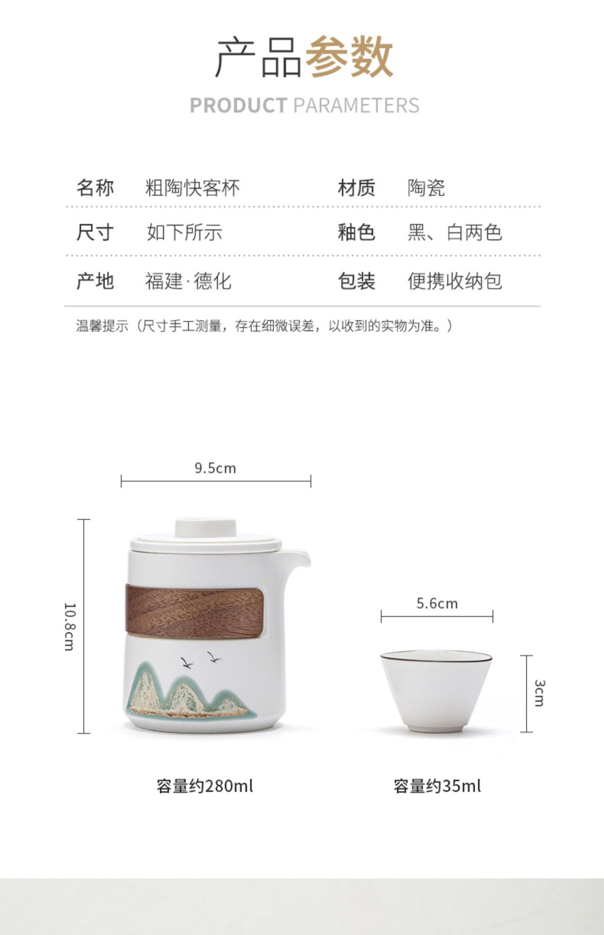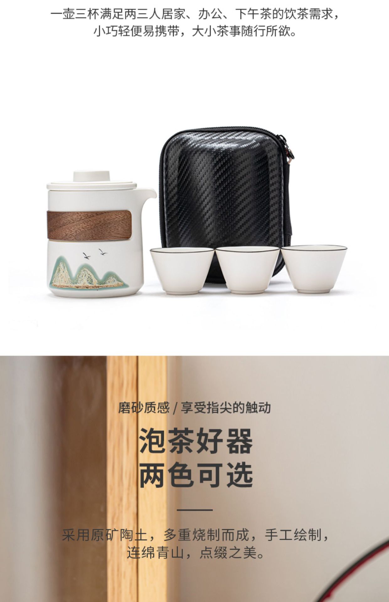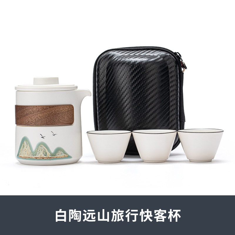 Kuaike 컵 1 팟 3 컵 휴대용 여행 차 세트 쿵푸 차 냄비 야외 캠핑 세트 간단한 로고 레터링