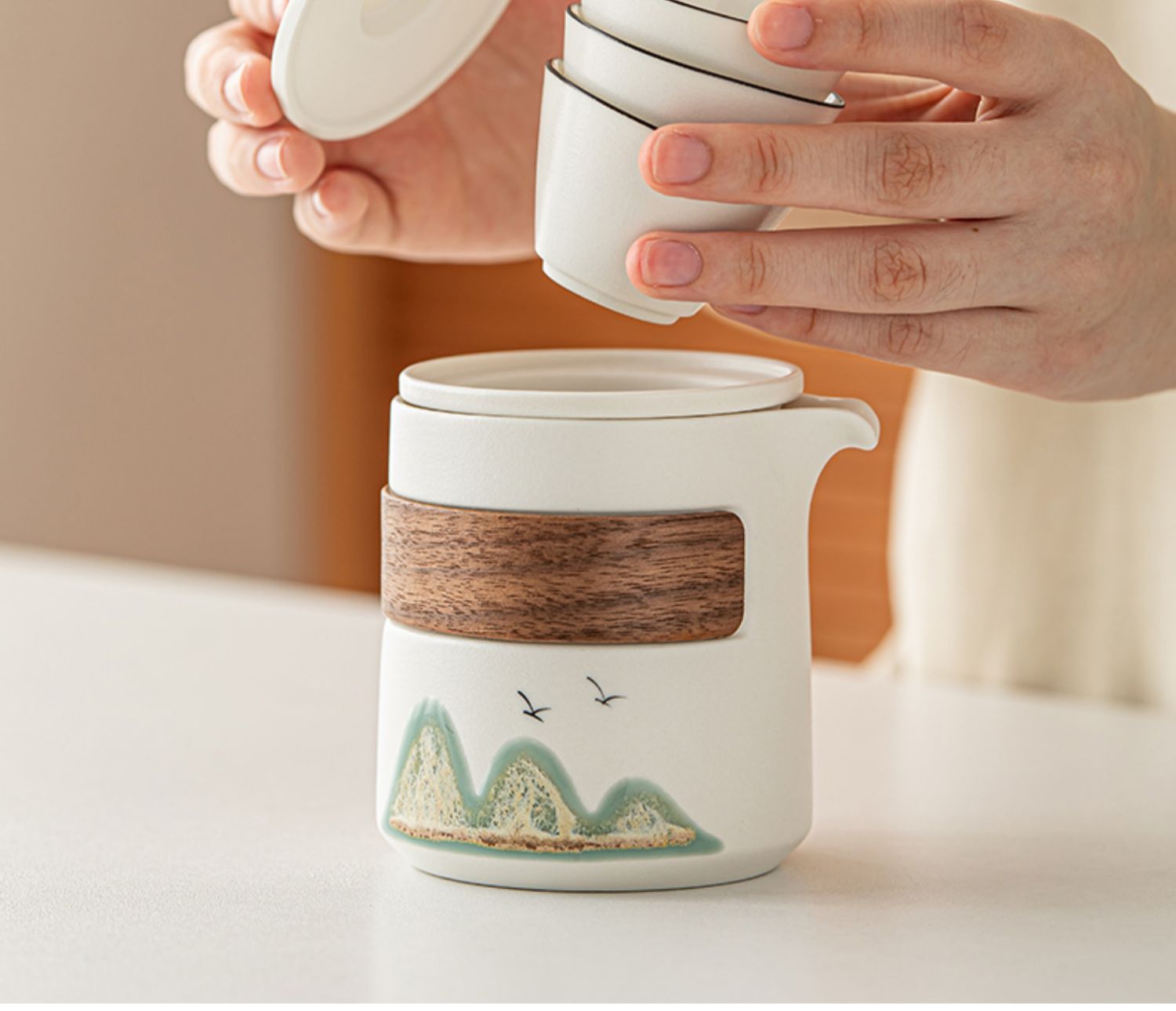 • 백도-Yuanshan Kuai Ke 컵, 냄비 1개와 컵 3개