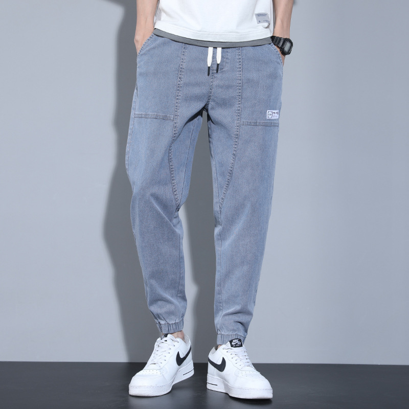 남성 청바지 봄과 가을 중학생 발목 묶은 하렘 느슨한 자른 캐주얼 바지 남성용 얇은 원피스 배달스토어 가기