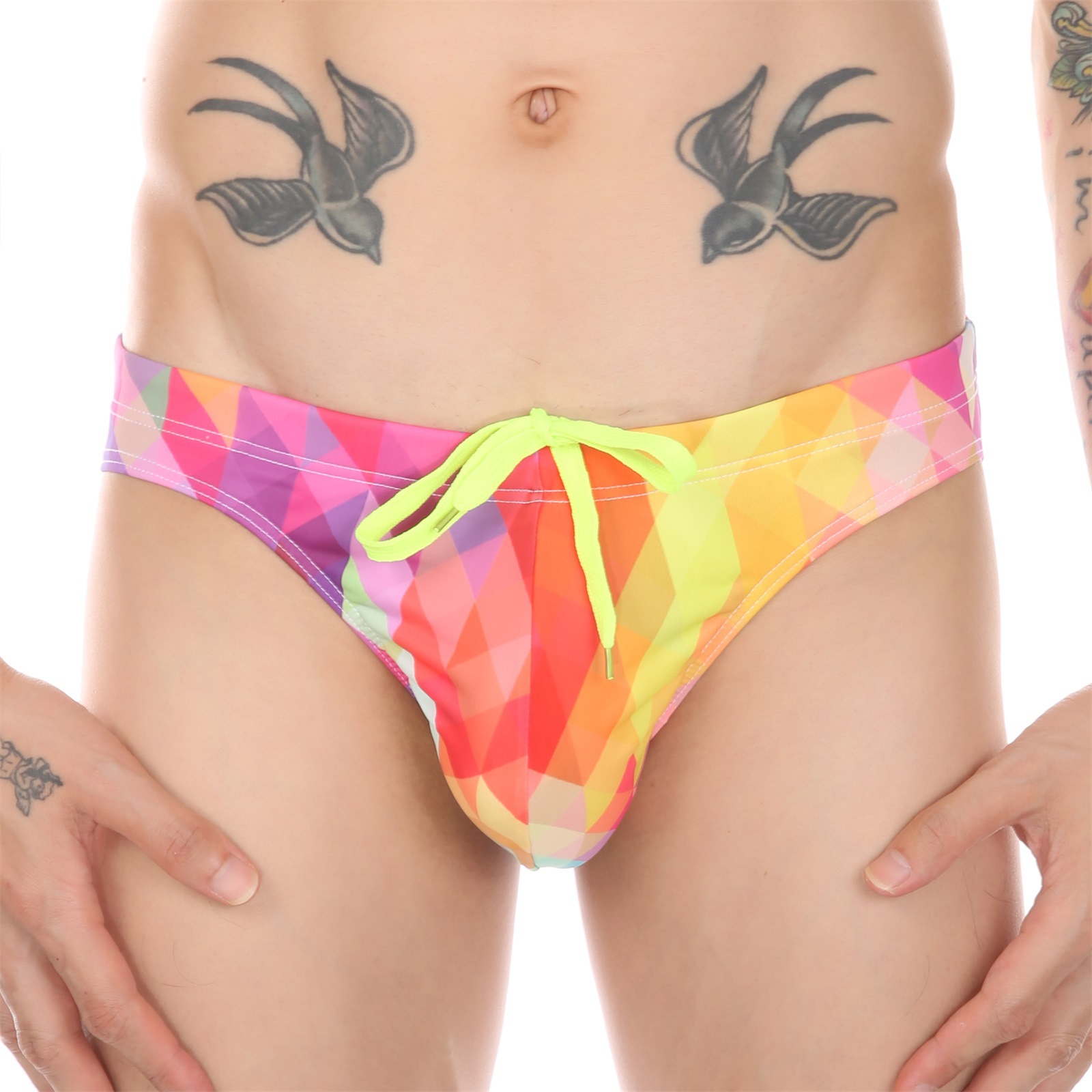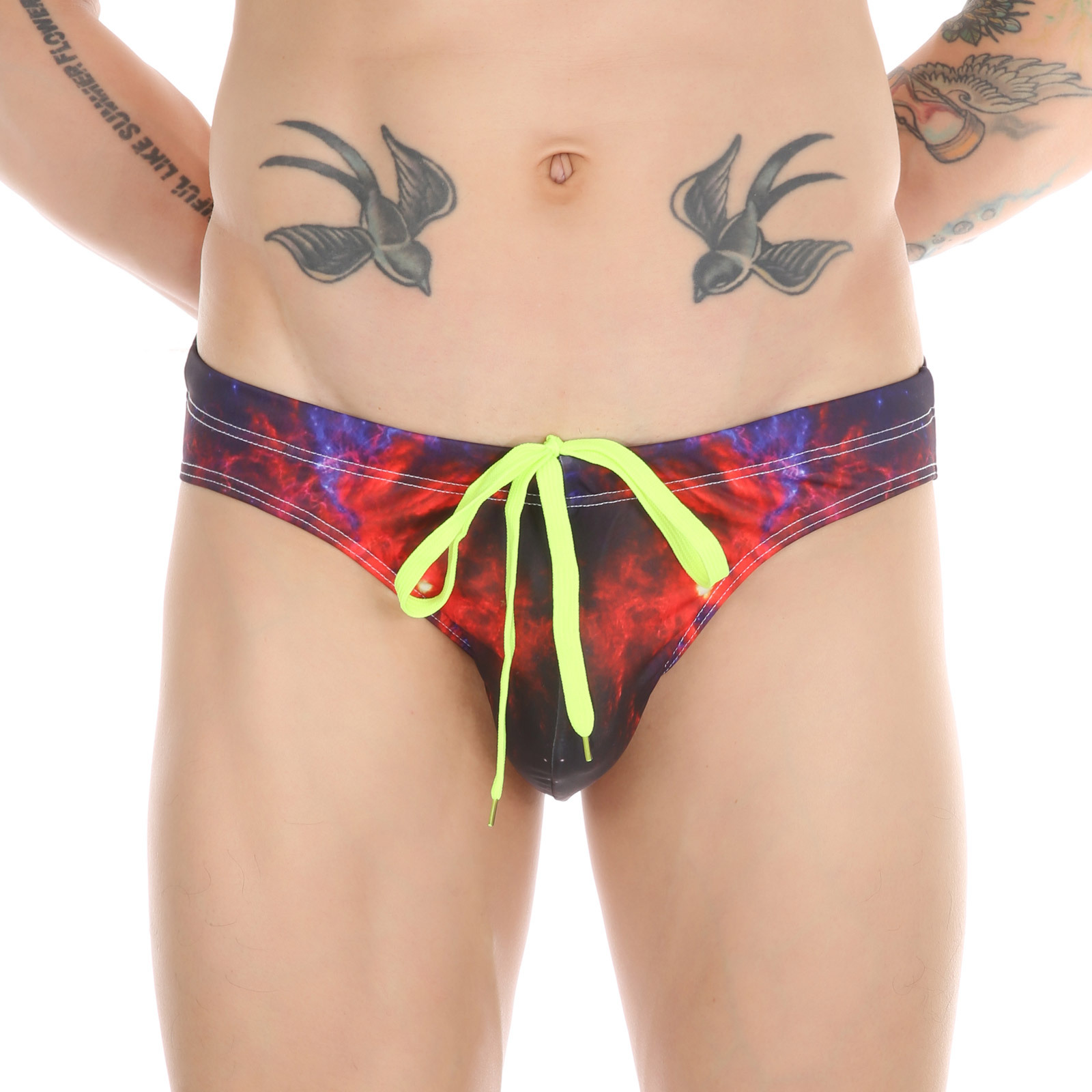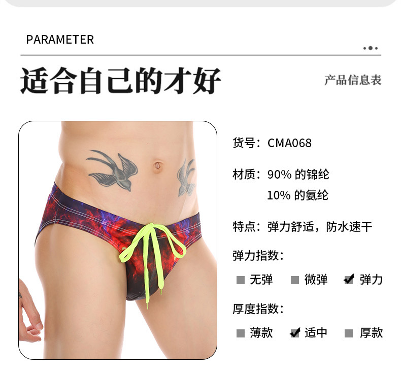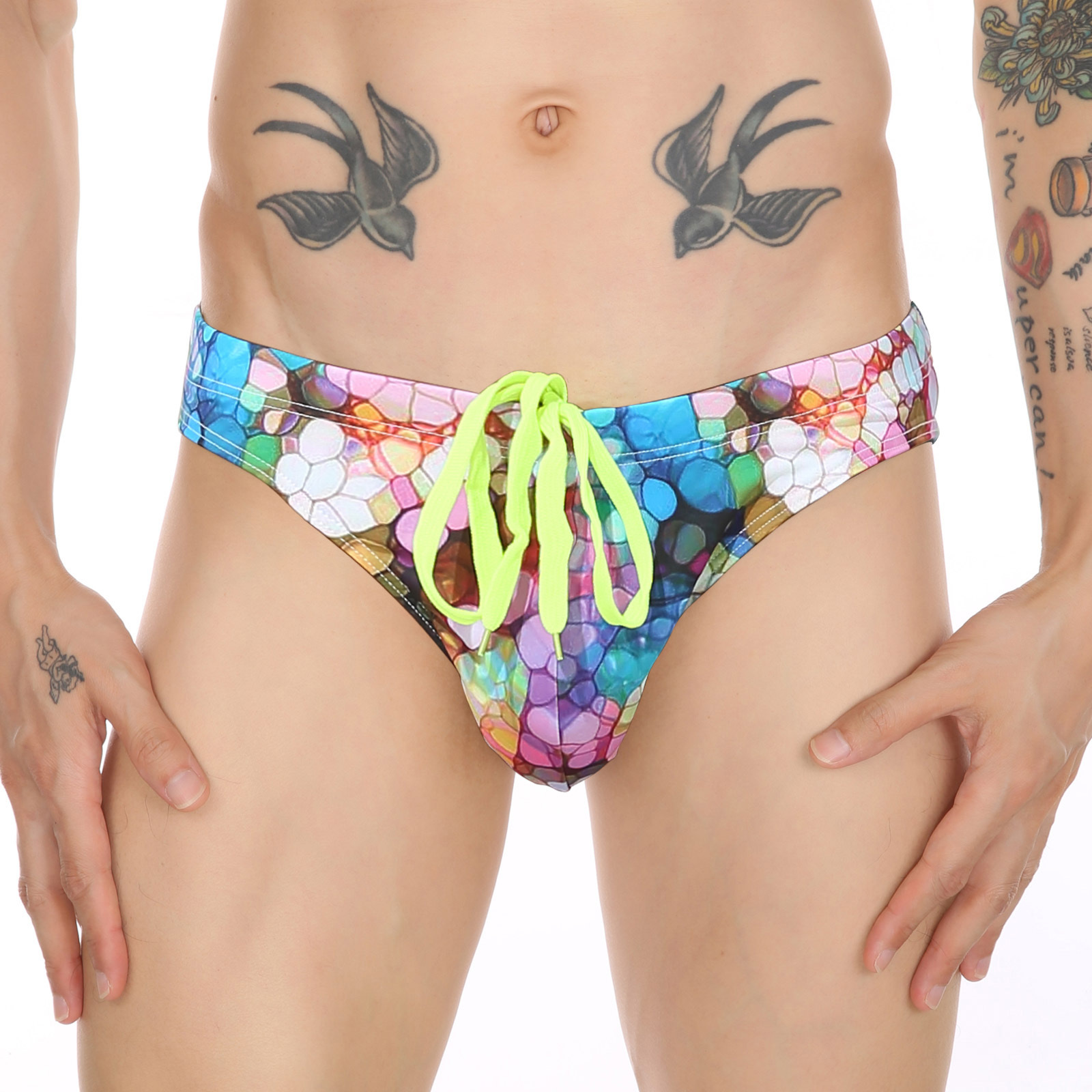 CLEVER-MENMODE 남자의 섹시한 레이스 업 패션 프린트 수영 트렁크 삼각형 수영복 플러스 사이즈 유럽 크기스토어 가기