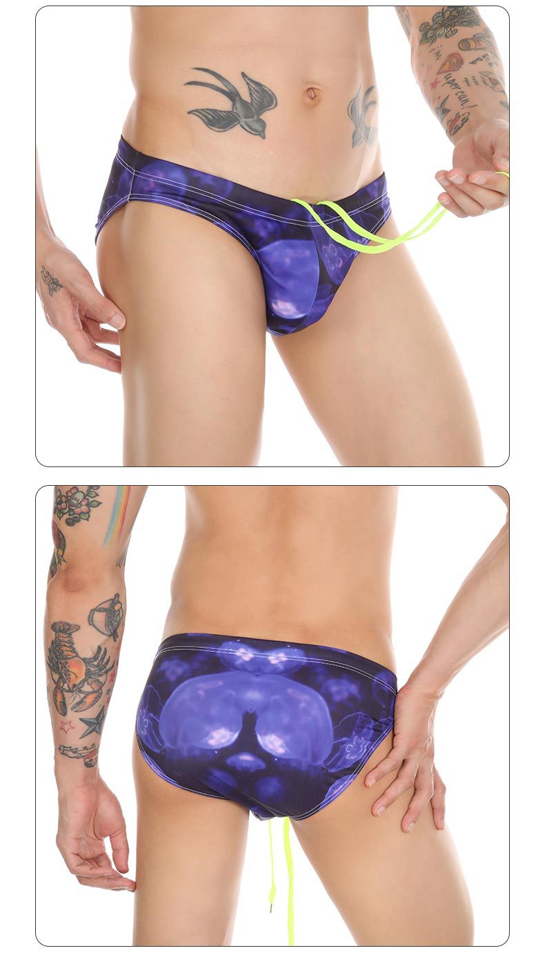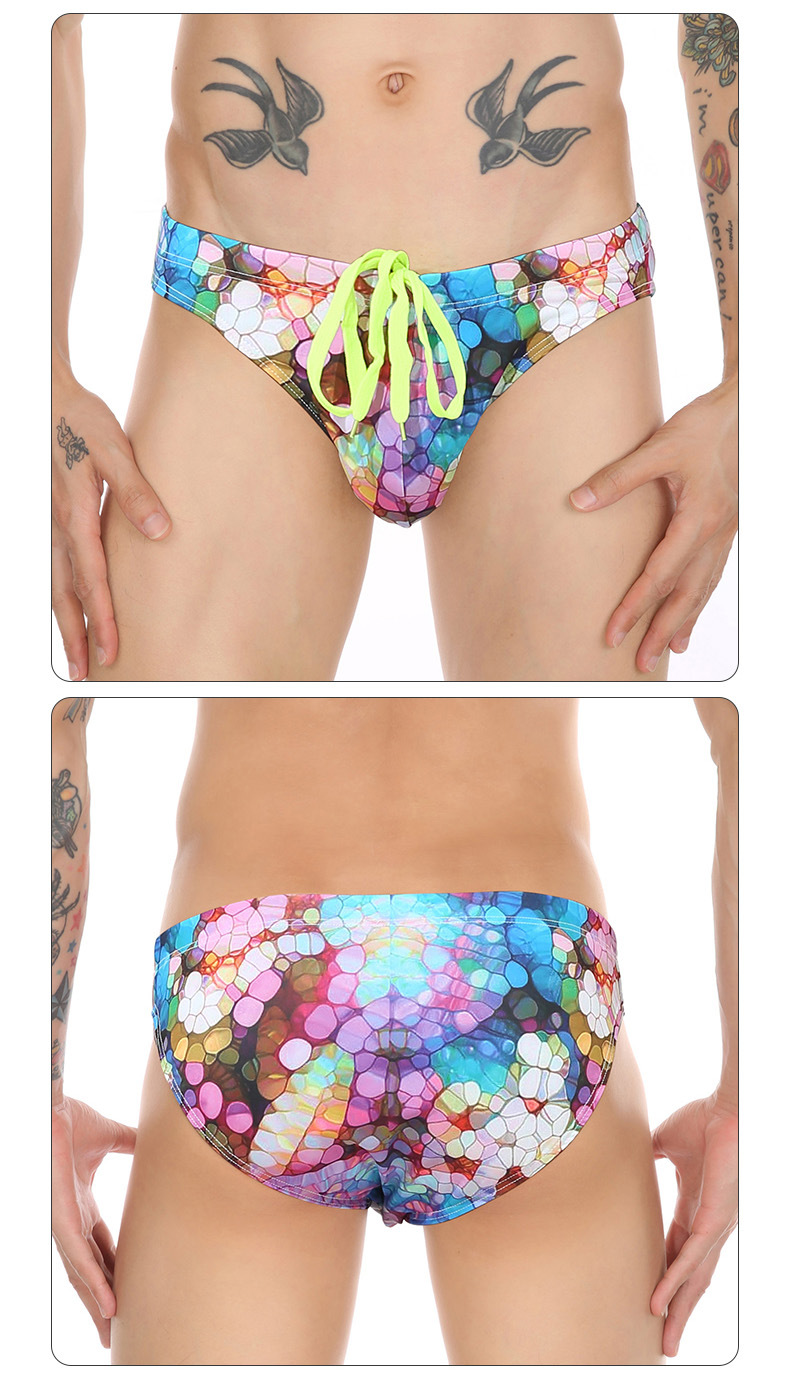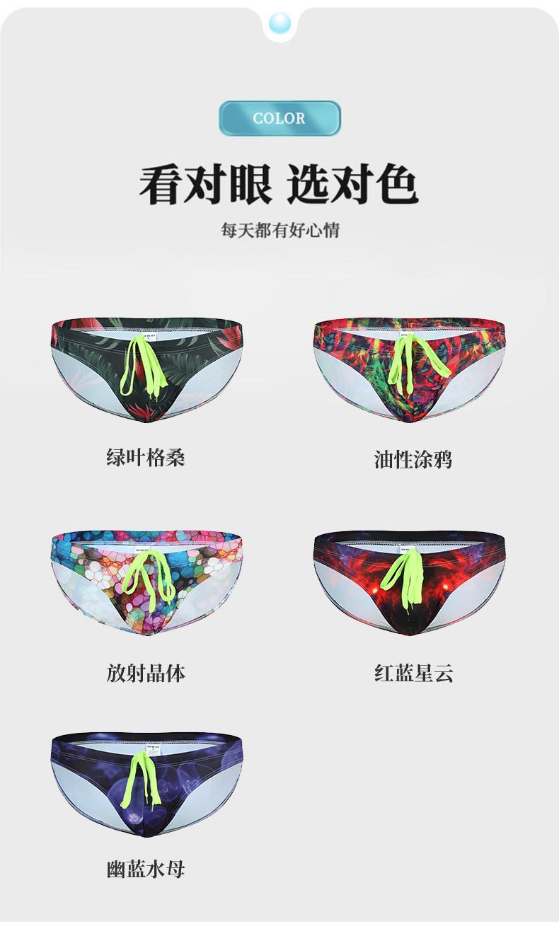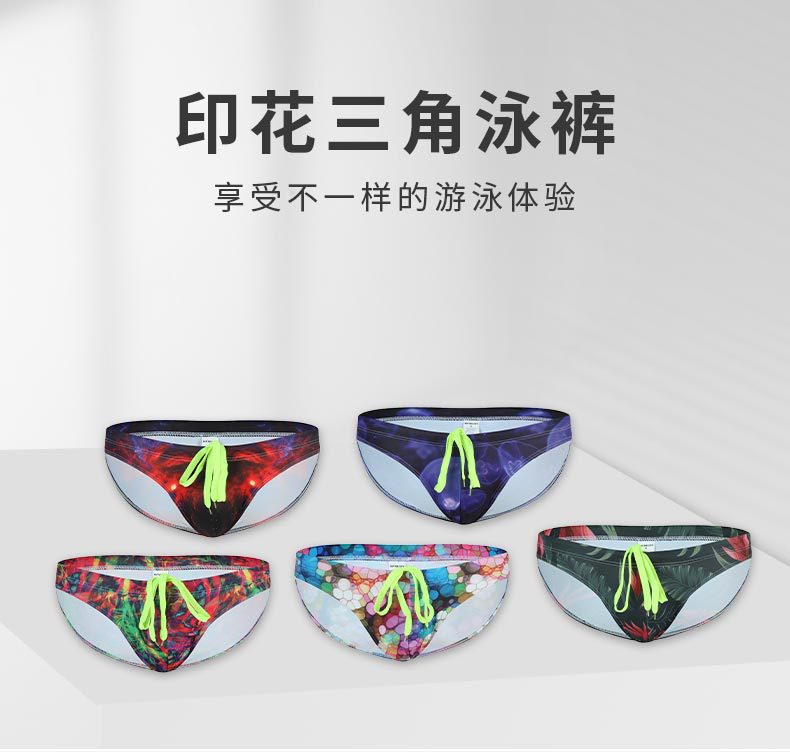 男士Pringting泳装三角裤风格夏季沙滩装抽绳泳衣短裤