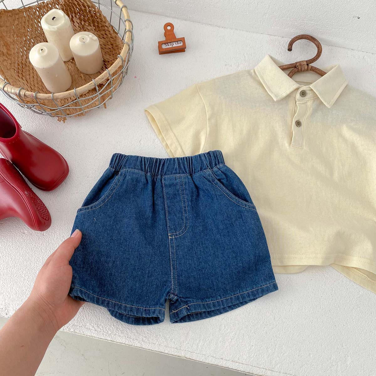 한국식 아동복 여름 아기 데님 반바지 남녀 아기 패션 올 매치 캐주얼 바지 얇은 포켓 바지