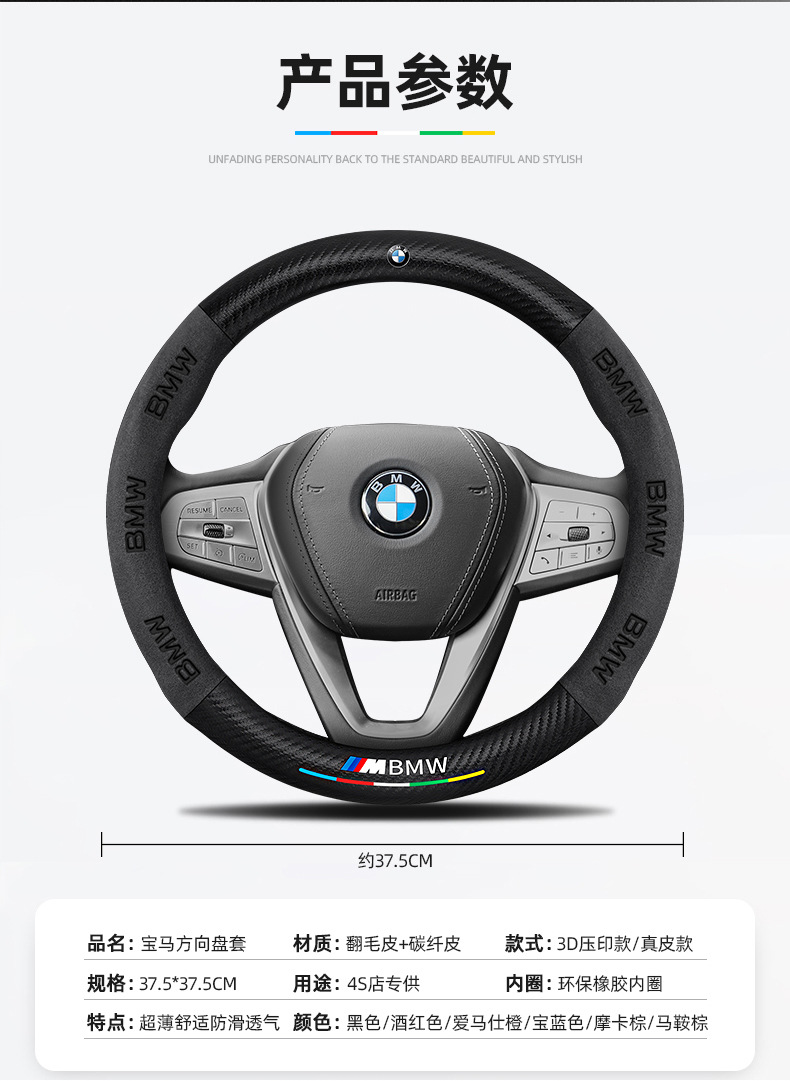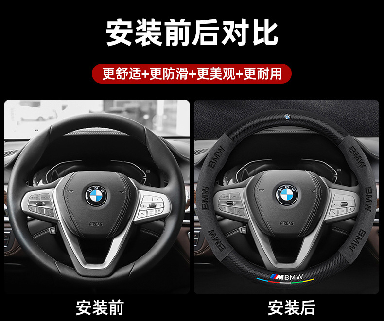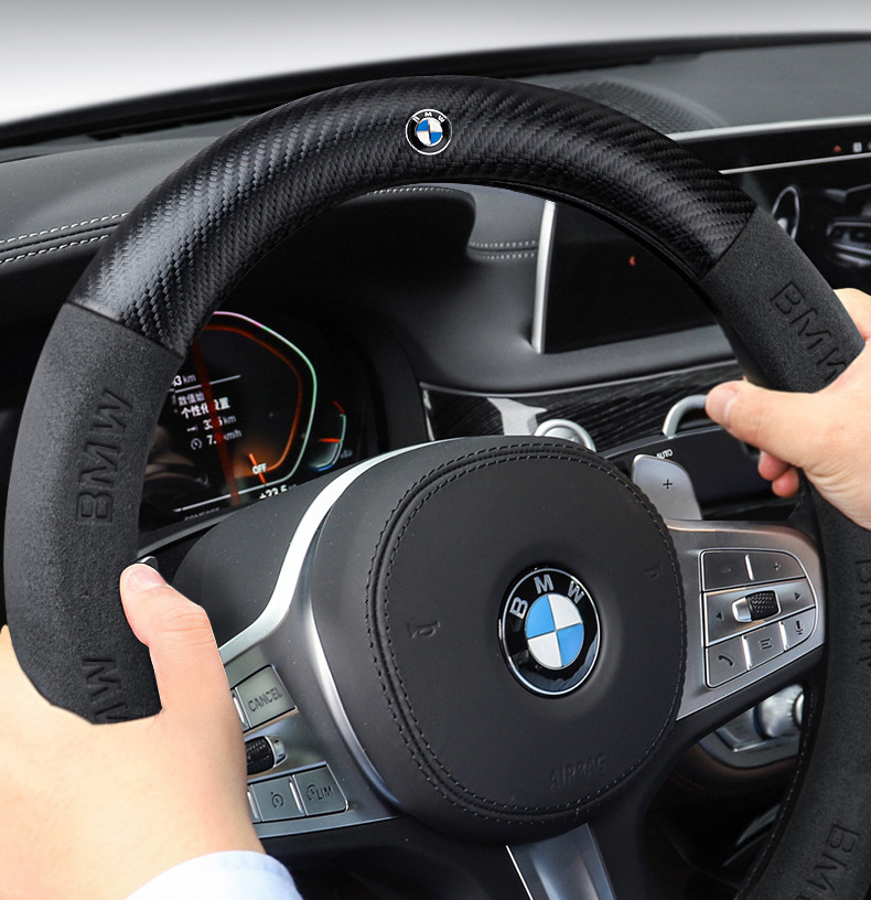 BMW 1/2/3/4/5/6/7 시리즈 X1/X2/X3/X4/X5/X6 스티어링 휠 커버에 적합 탄소 섬유 스웨이드스토어 가기