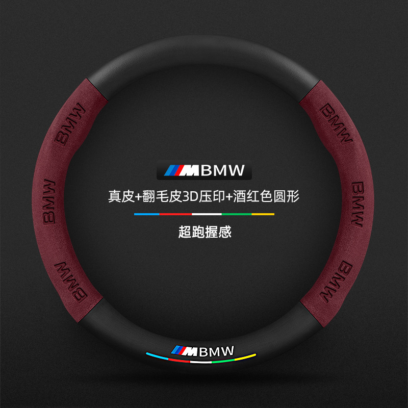 • 정품 가죽 + 스웨이드 3D 엠보싱 + 버건디 라운드
