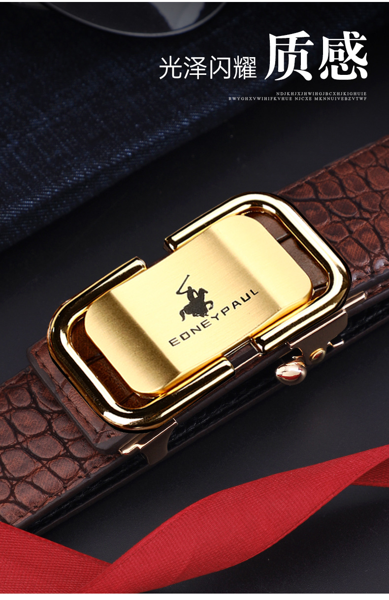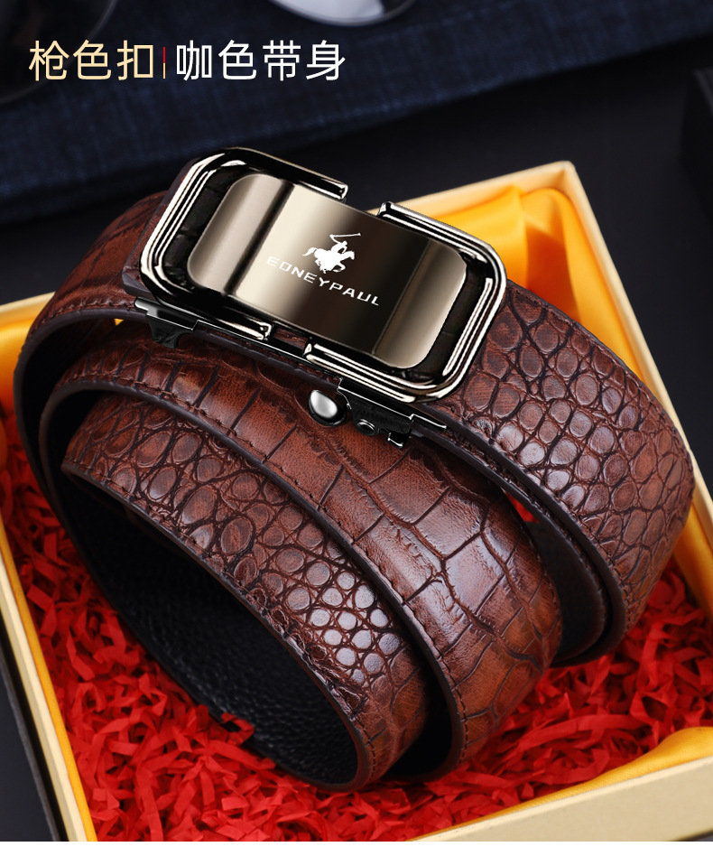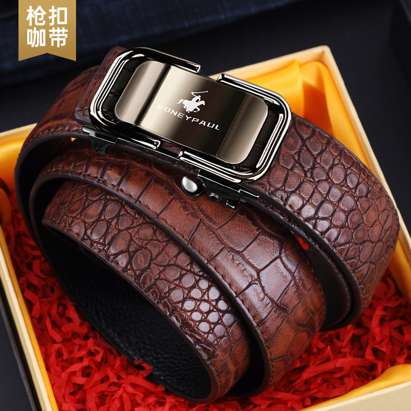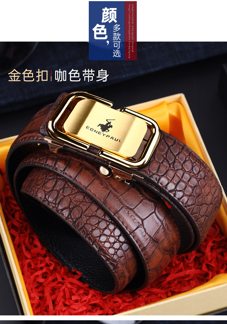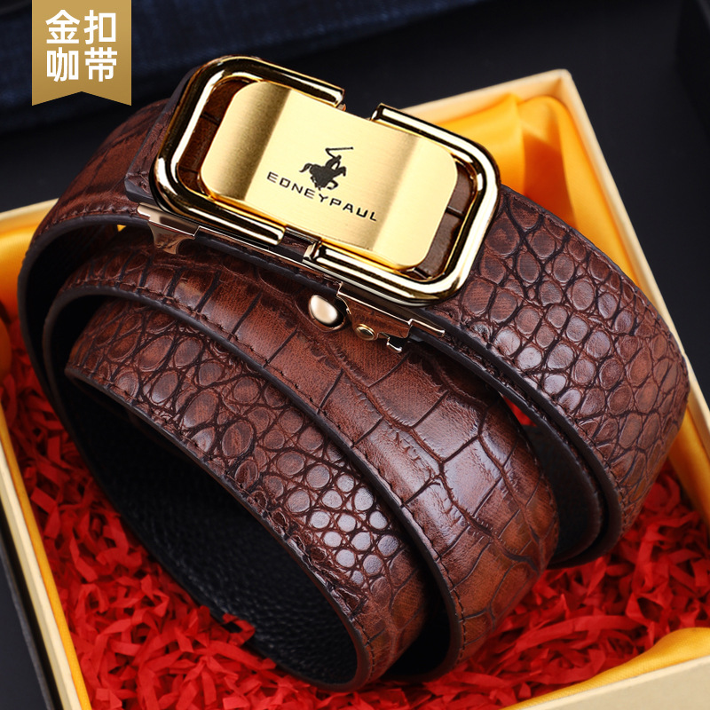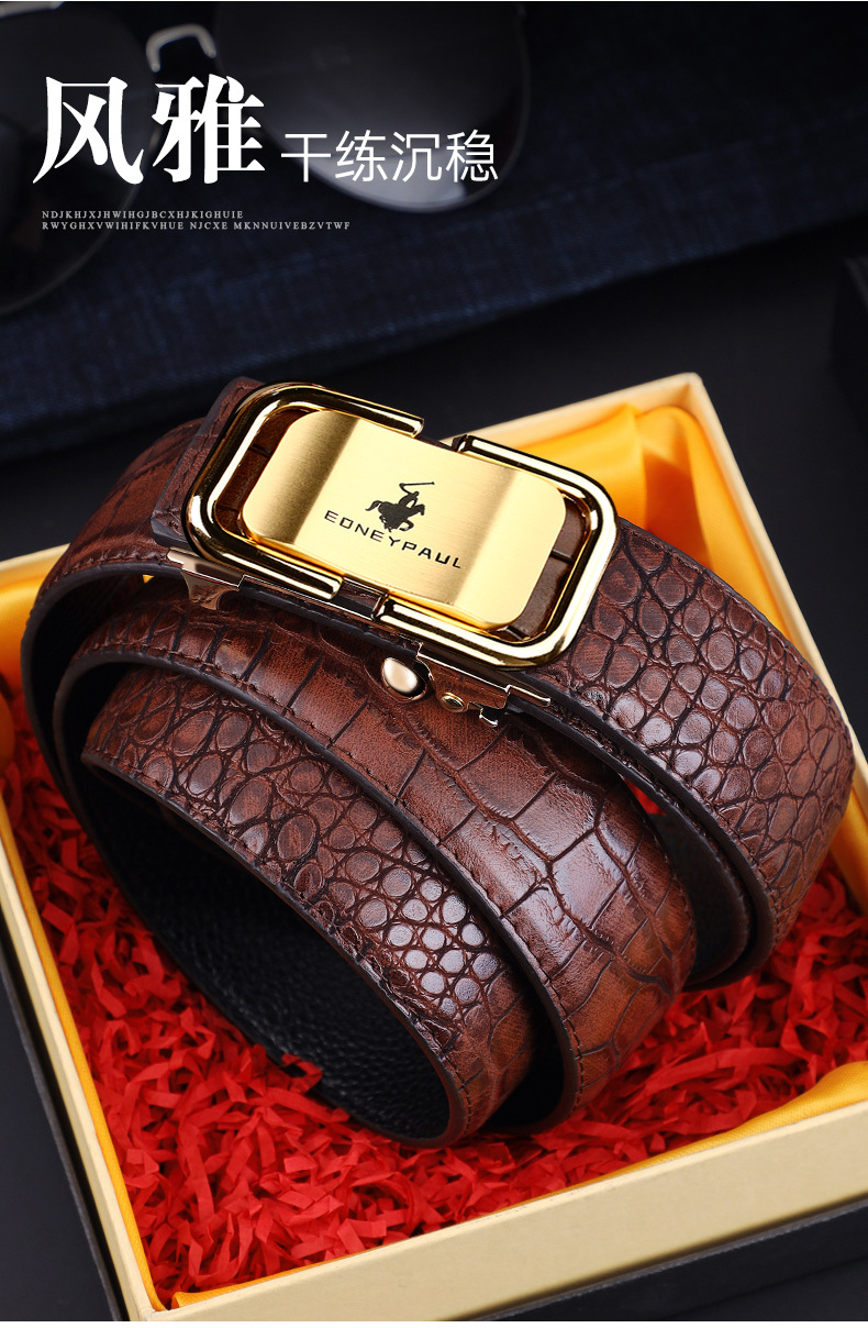 남성 가죽 벨트 악어 패턴 내부 착용 자동 버클 패션 올 매치 벨트 젊은 및 중년 캐주얼 비즈니스 바지 벨트 패션