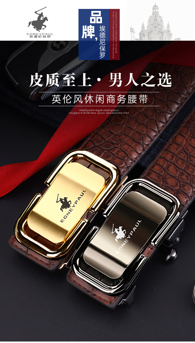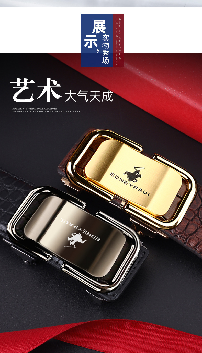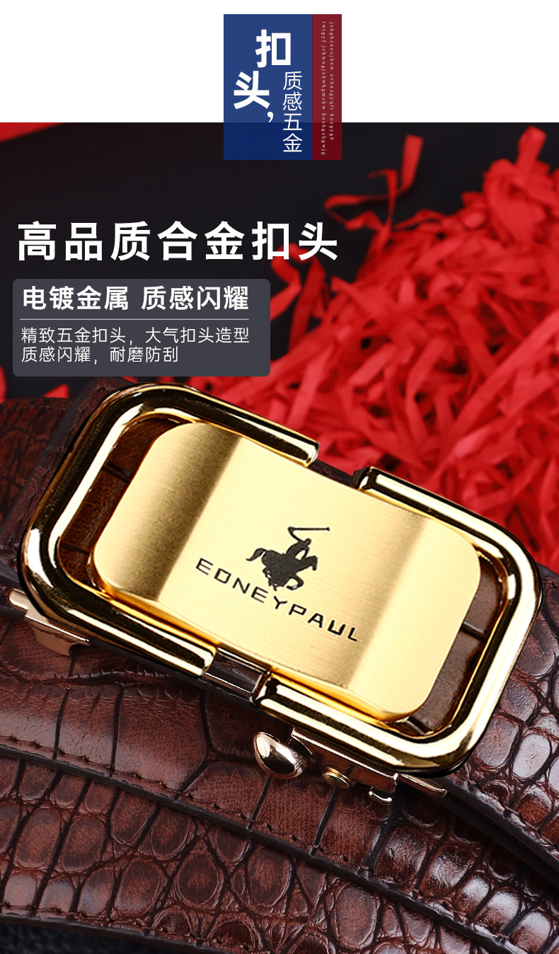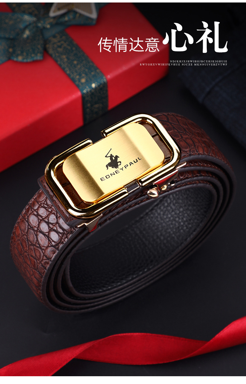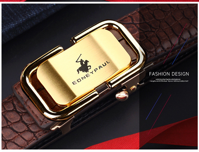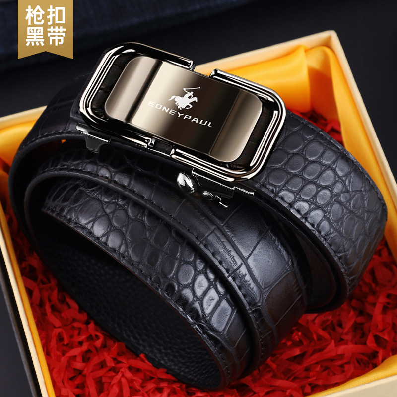 남성 가죽 벨트 악어 패턴 내부 착용 자동 버클 패션 올 매치 벨트 젊은 및 중년 캐주얼 비즈니스 바지 벨트 패션