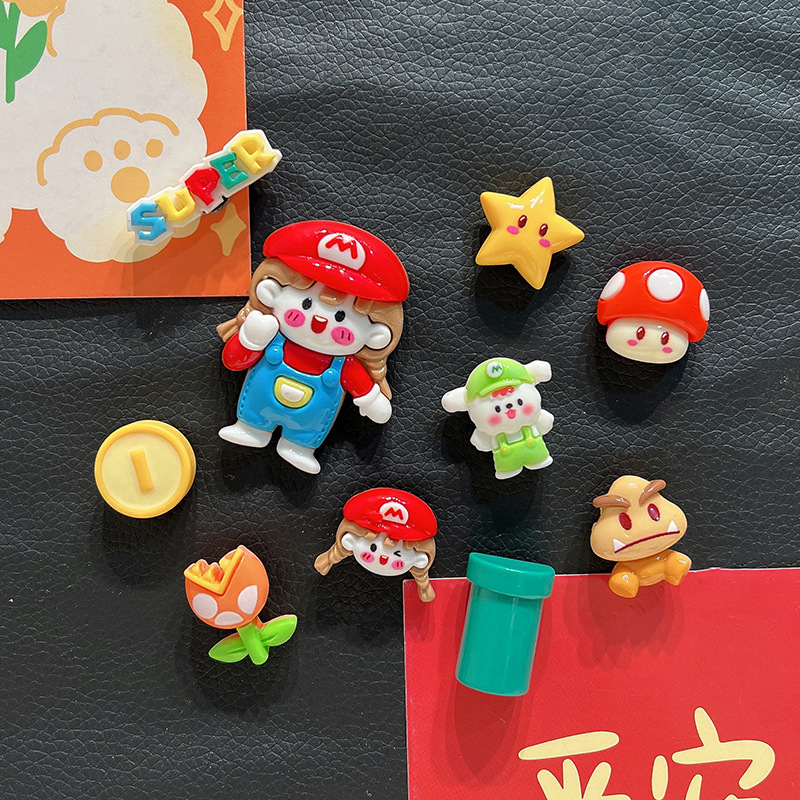 고전적인 만화 마리오 게임 액세서리 냉장고 자석 파이프 노동자 붉은 버섯 창조적 인 성격 자석