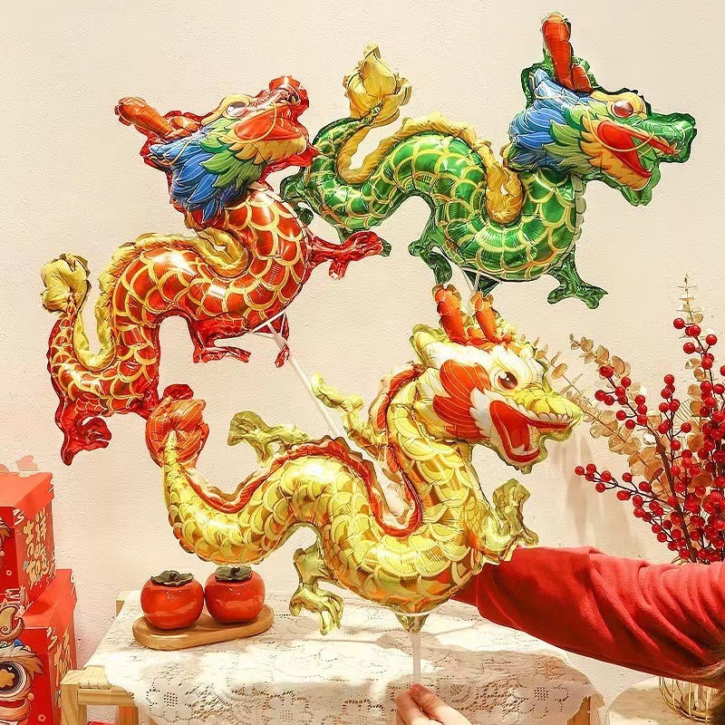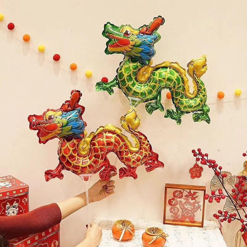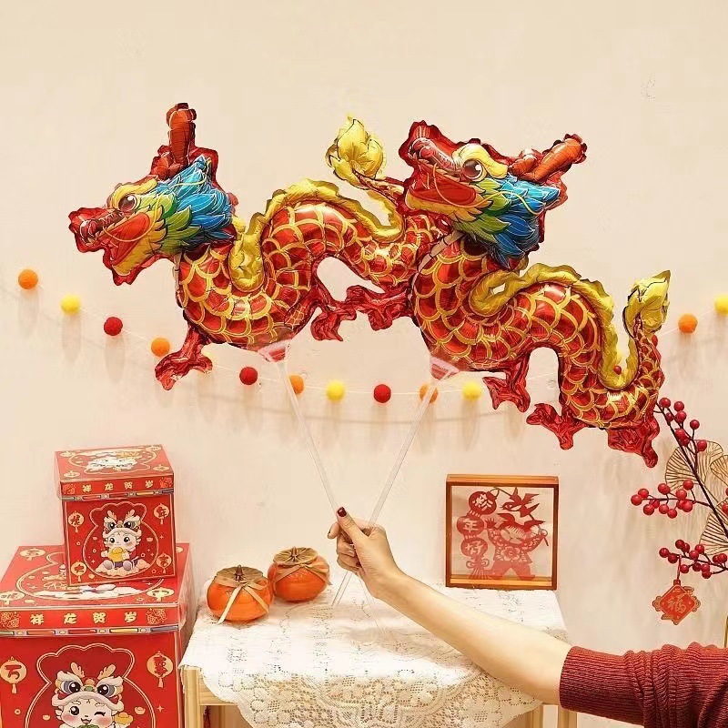 드래곤 신년 용 핸드 헬드 스틱 알루미늄 풍선 연례 회의 봄 축제 활동 분위기 장식 천 바닥 푸시 도매의 2024 년