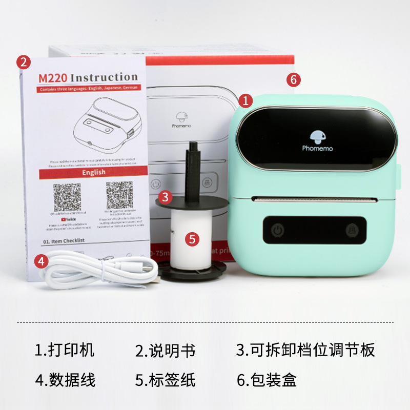 Phomemo M220 상용 라벨 프린터 hd 블루투스 휴대용 국경 열 프린터 로고 도매스토어 가기