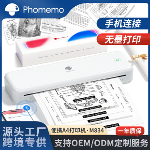 PhomemoM834便携a4打印机热敏无墨300DPI蓝牙小型办公家用错题机