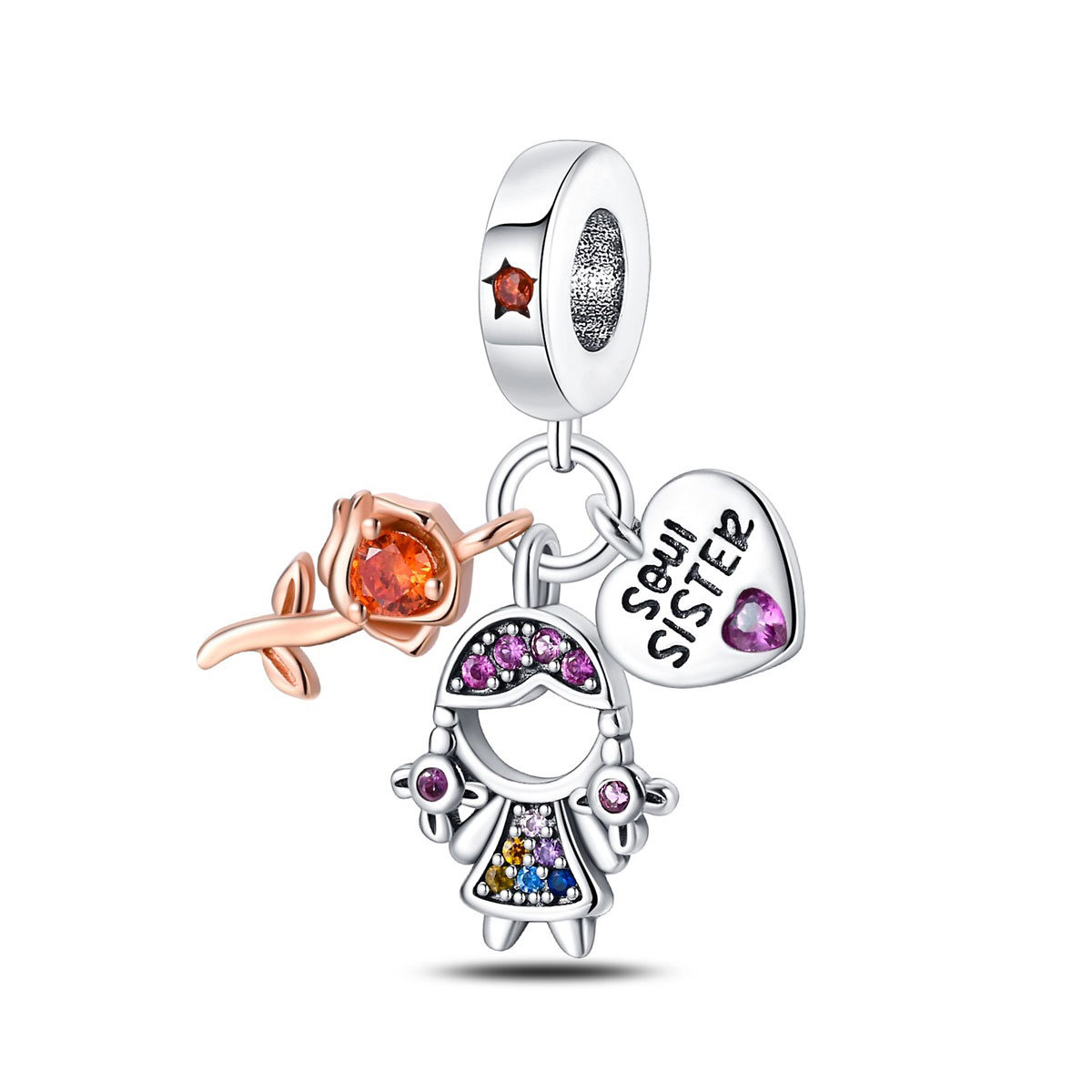 DIY 보석 액세서리 구리 실버 도금 달콤한 자매 시리즈 자매 깊은 사랑 구슬 펜던트 크로스 국경 아마존 도매
