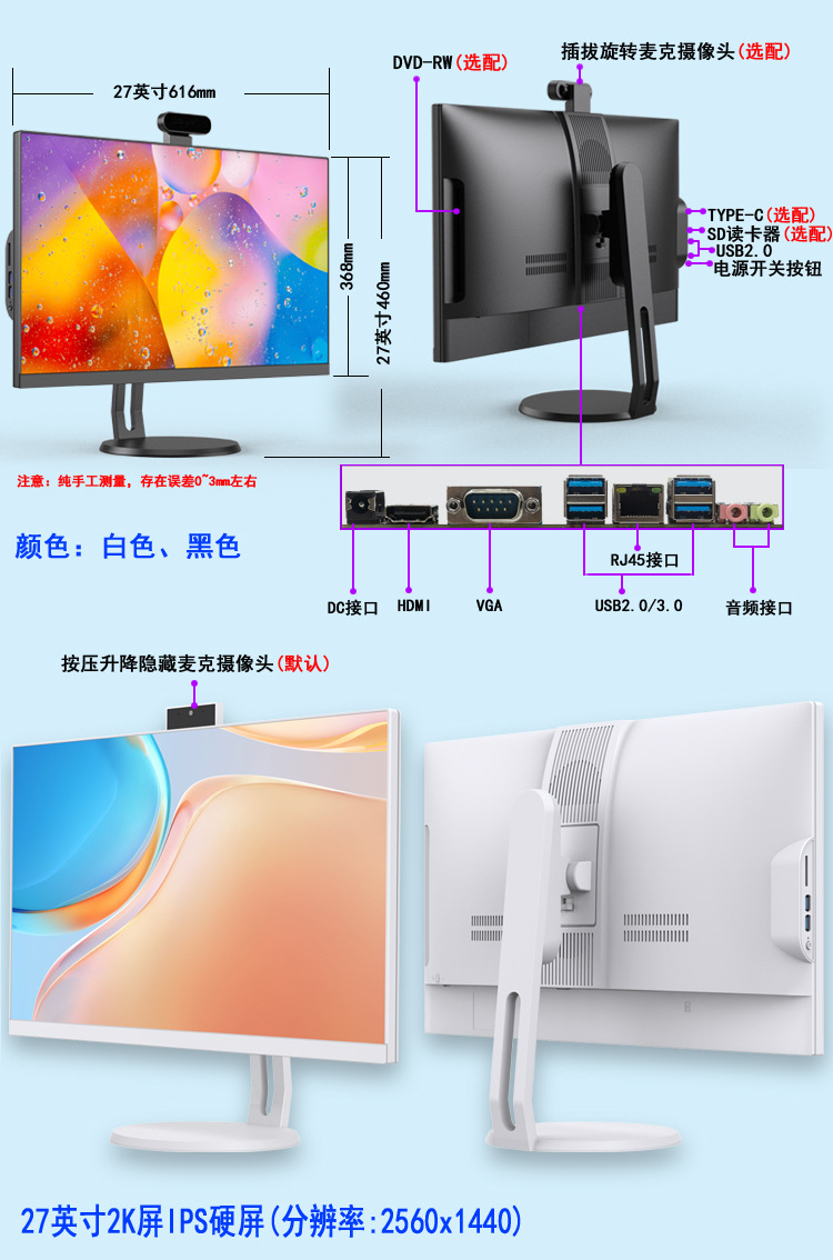Qixing FD27-inch 2K 화면 IPS 화면 12 세대 Core i5i7 올인원 컴퓨터 데스크톱 호스트 모니터 전체 세트