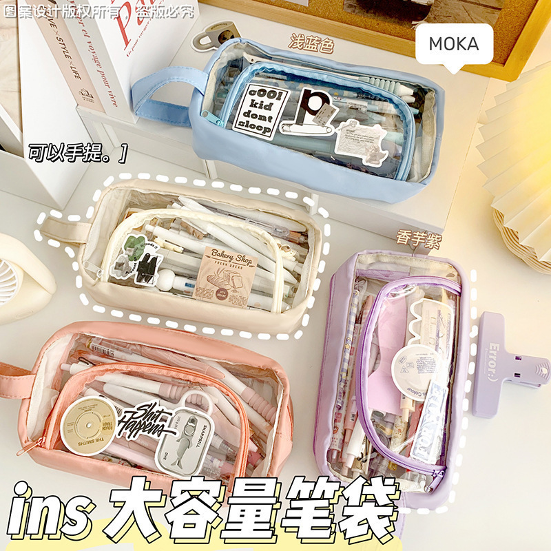 한국 스타일 간단한 투명 연필 케이스 도매 대용량 휴대용 연필 가방 학습 상금 저장 문구 가방