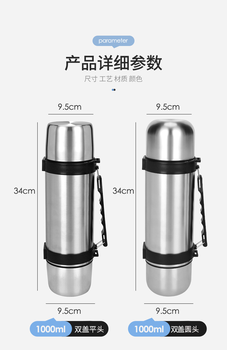 총알 진공 컵 대용량 1000ML 스테인레스 스틸 야외 열 냄비 휴대용 자동차 여행 물 컵 주전자