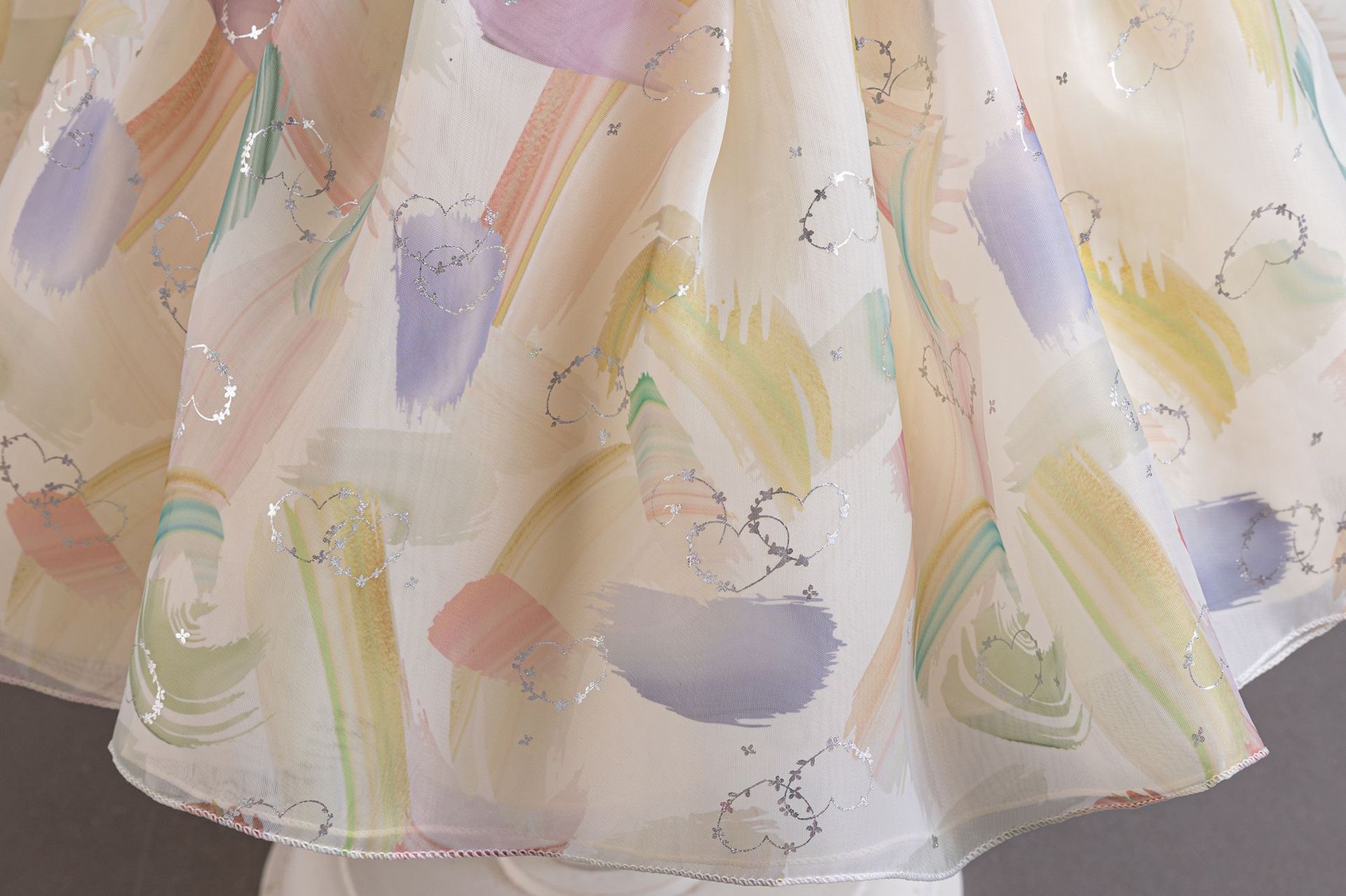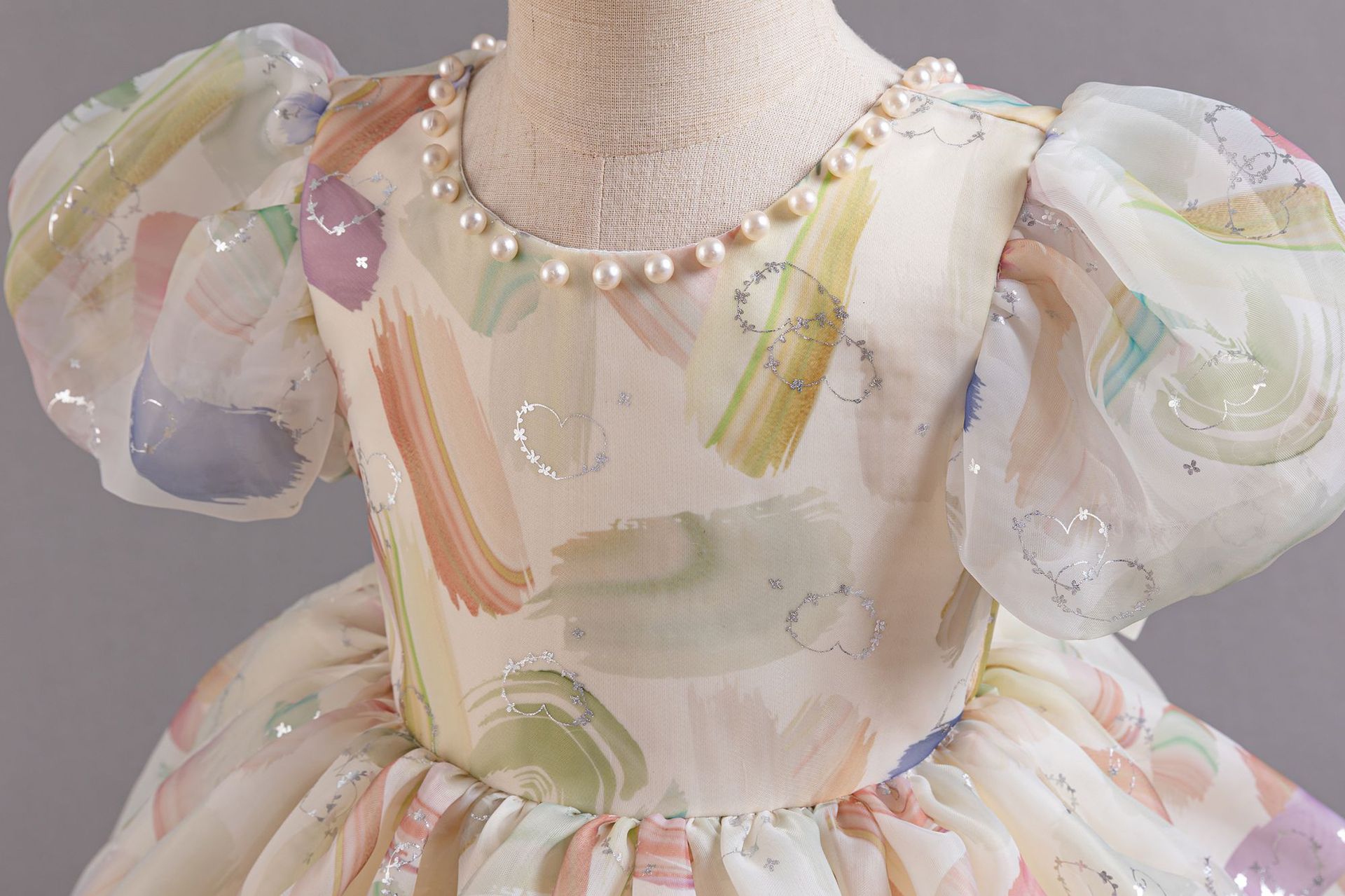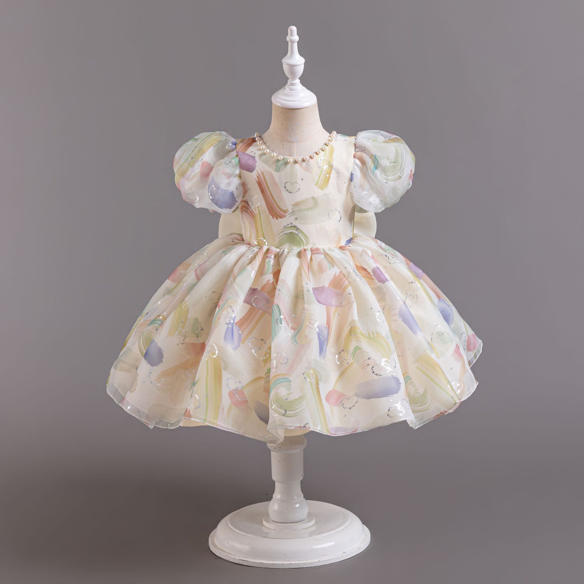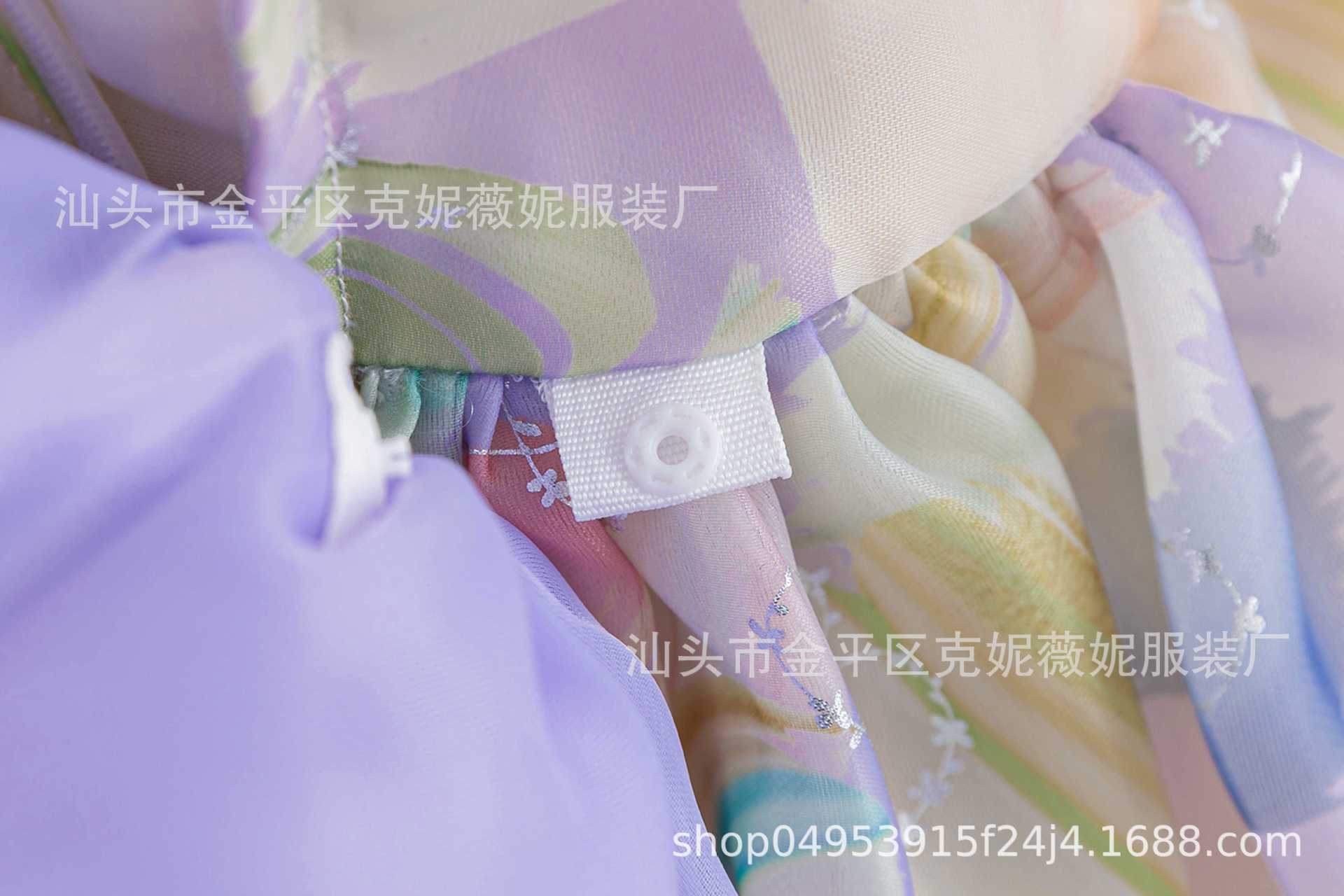새로운 2024 여름 소녀 원피스 유럽과 미국의 퍼프 소매 공주 원피스 어린이 꽃 원피스 메쉬 페티 스커트