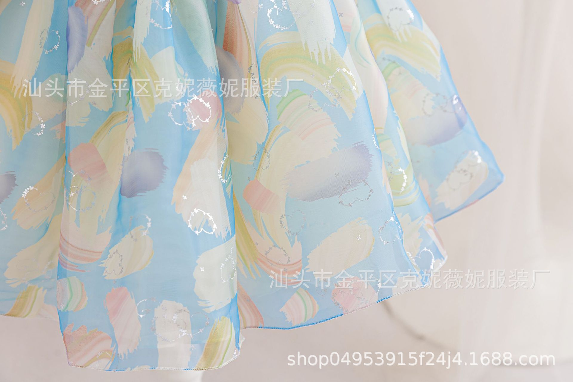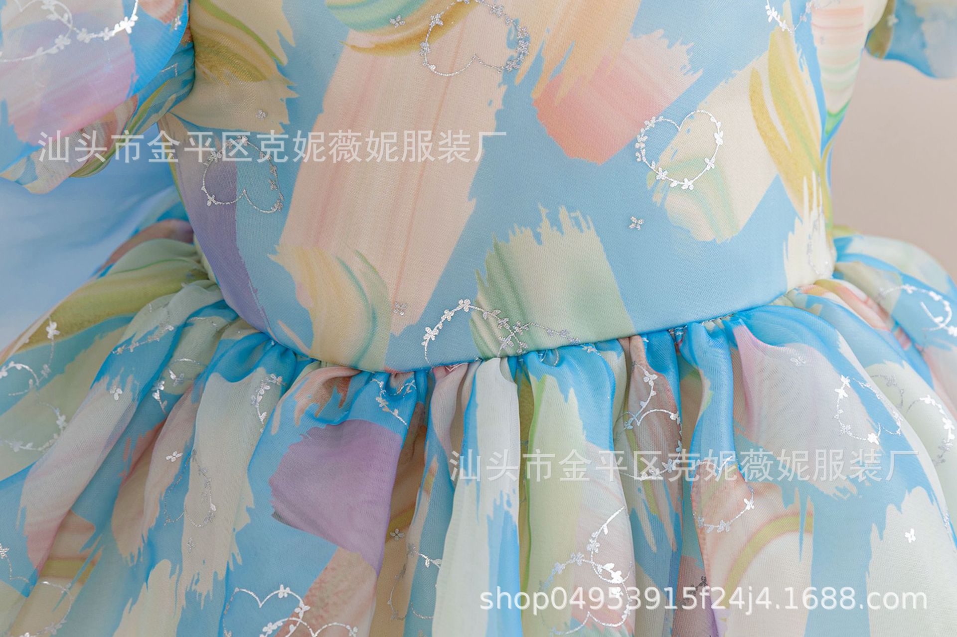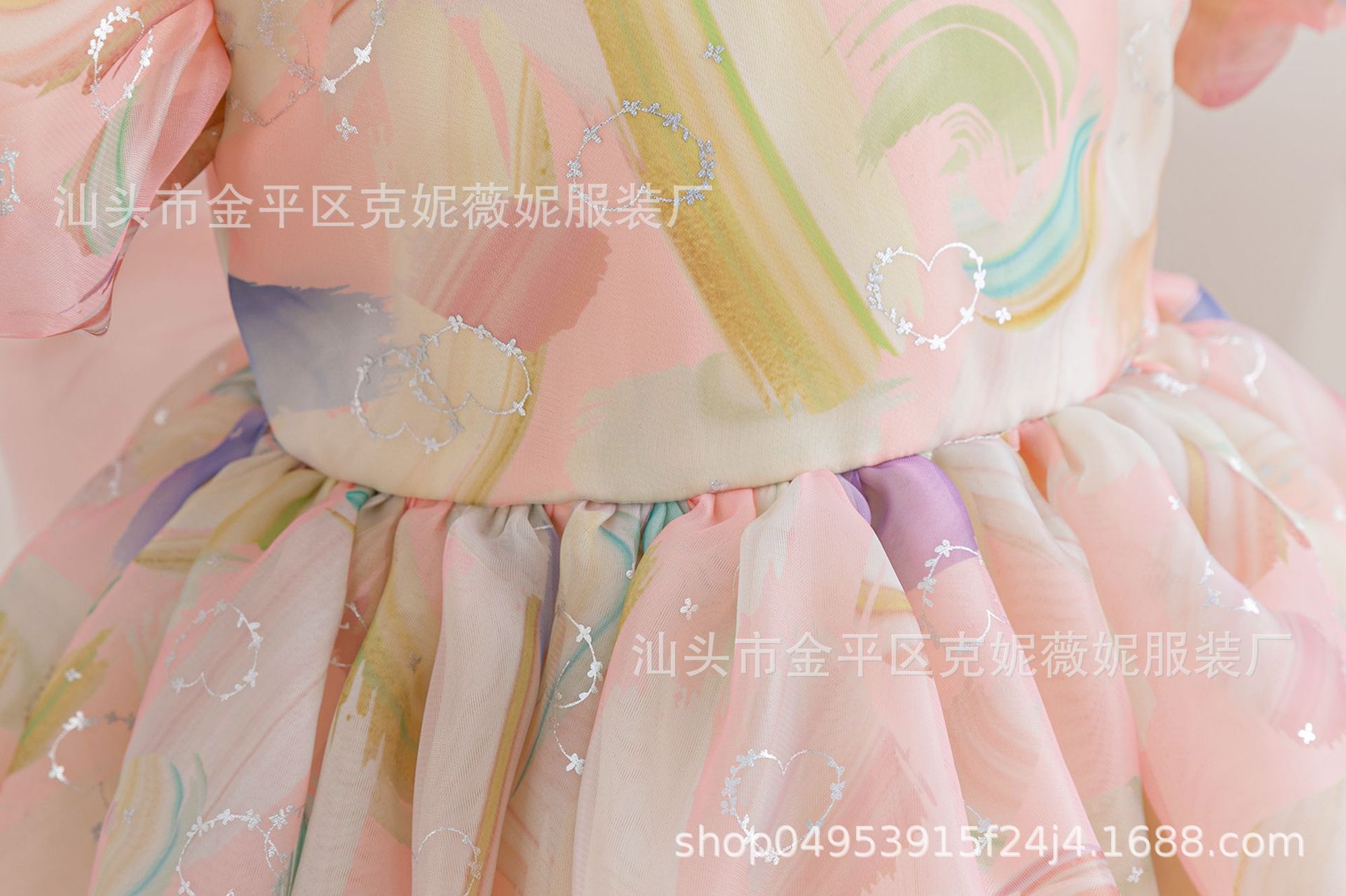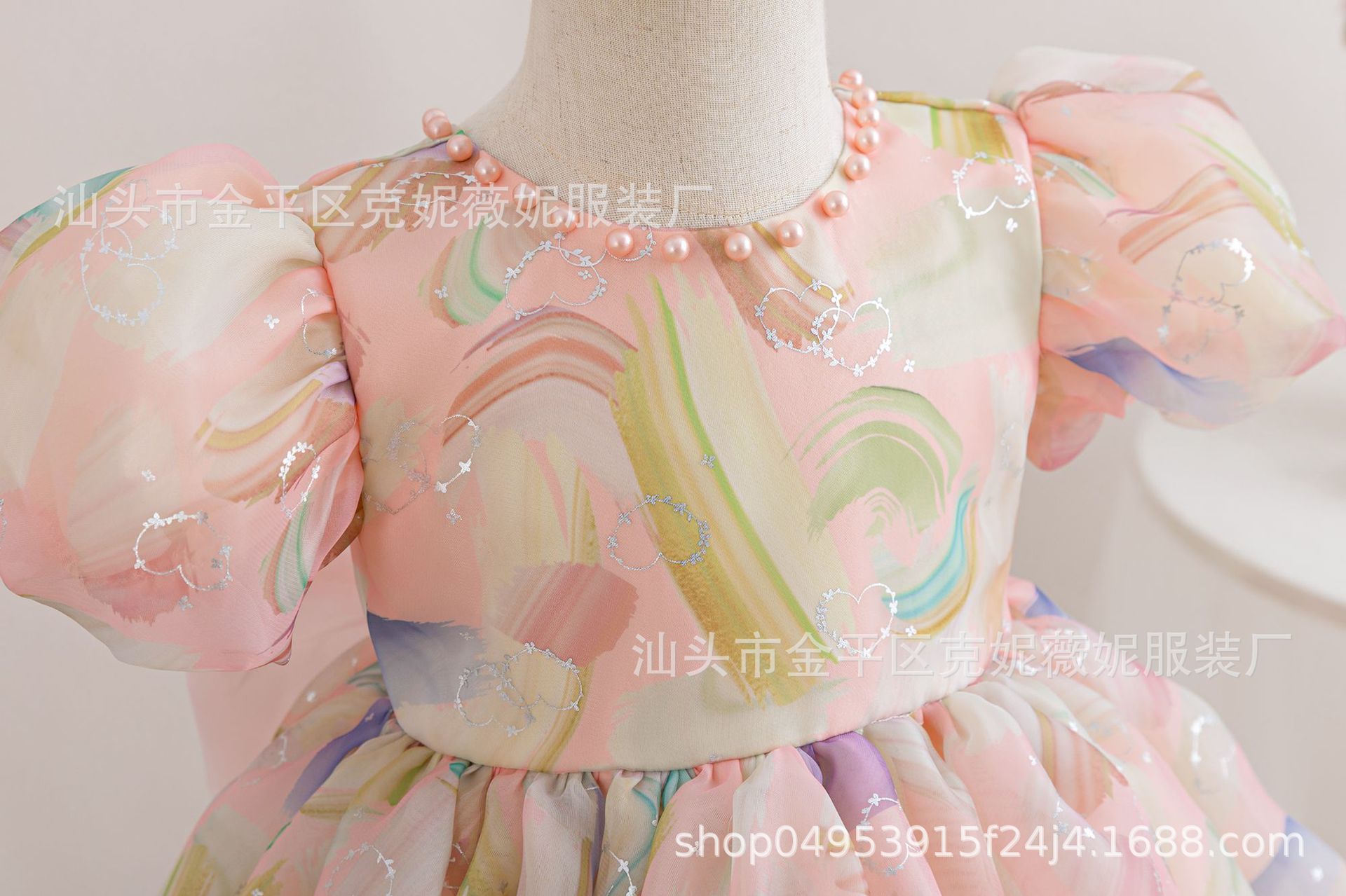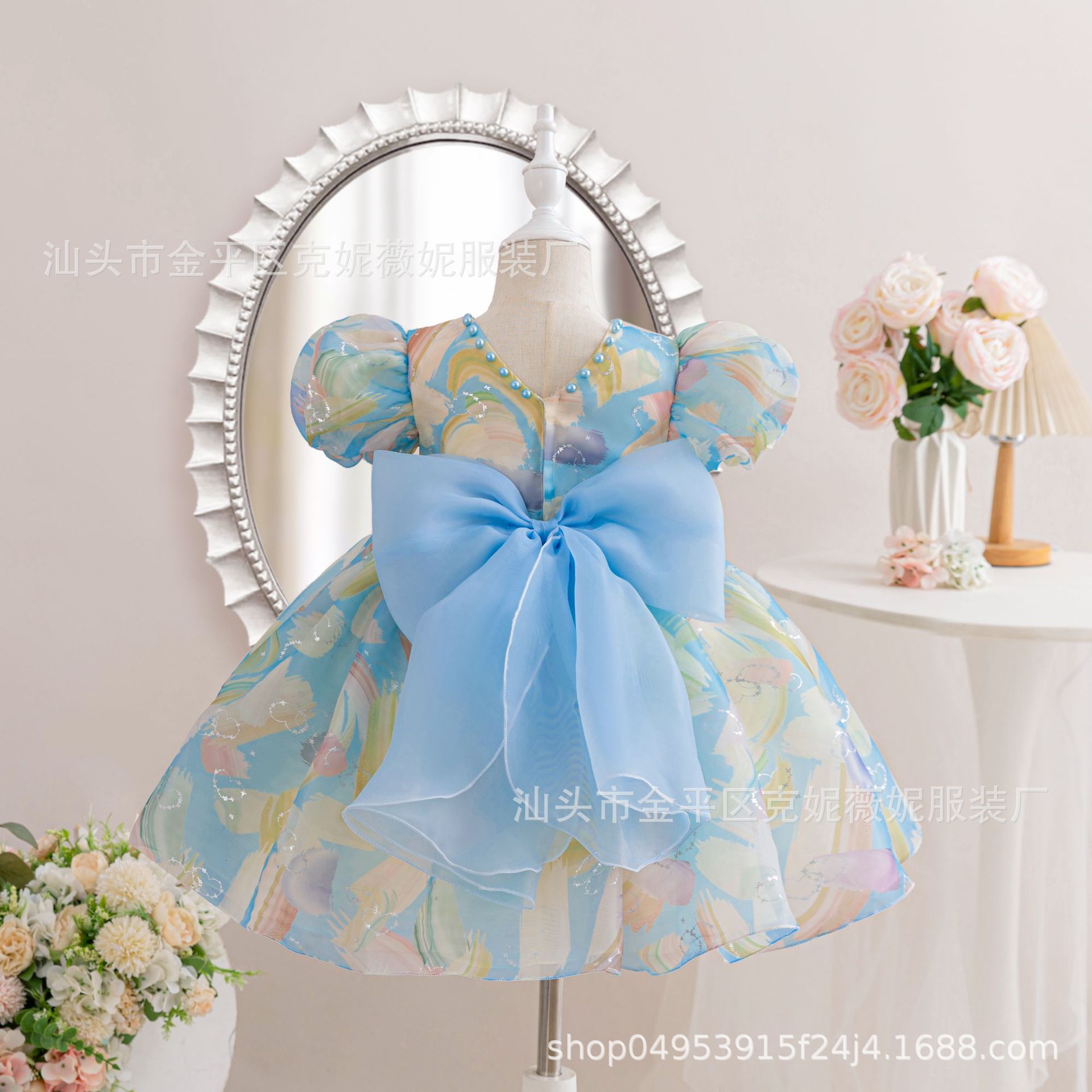 새로운 2024 여름 소녀 원피스 유럽과 미국의 퍼프 소매 공주 원피스 어린이 꽃 원피스 메쉬 페티 스커트스토어 가기