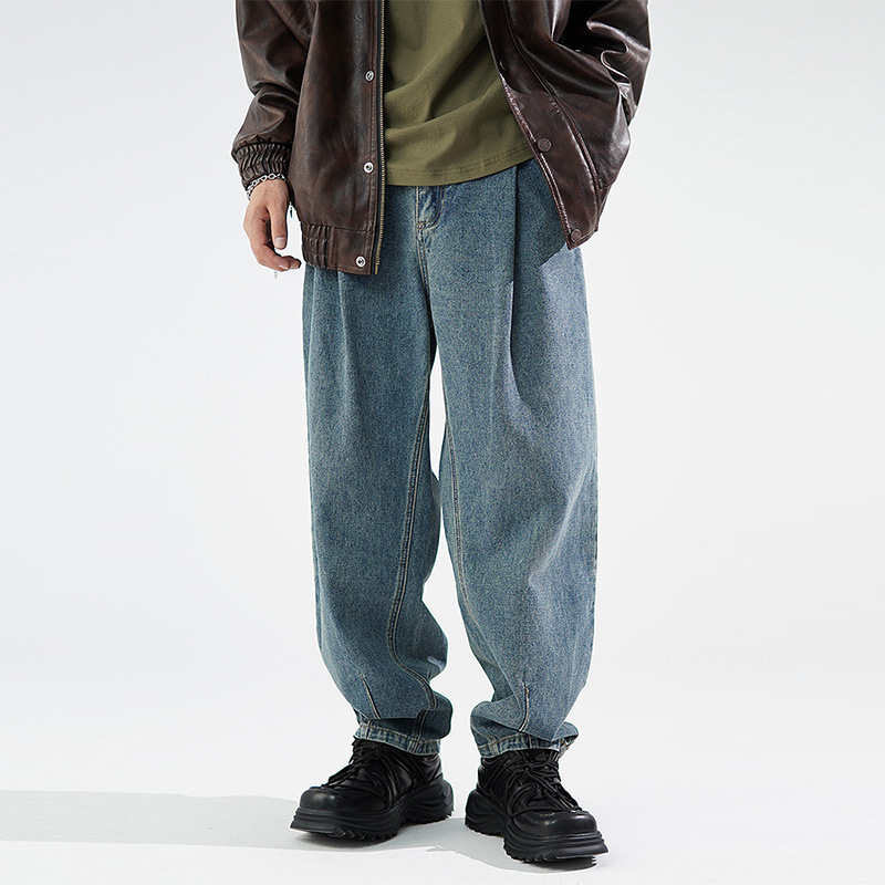청바지 남자 가게 주인 강한 추천 자기 유지 스타일 슈퍼 좋은 남자의 넓은 다리 하렘 플러스 사이즈 바나나 바지스토어 가기