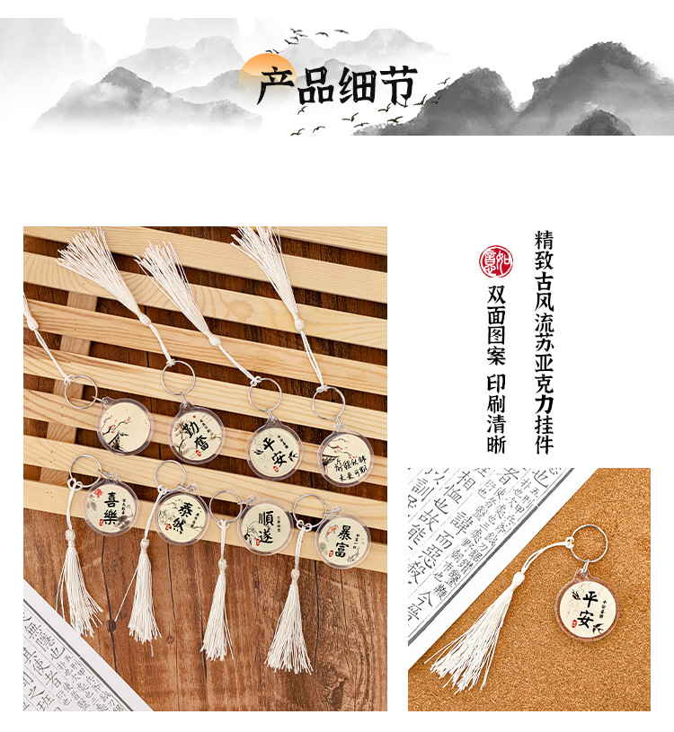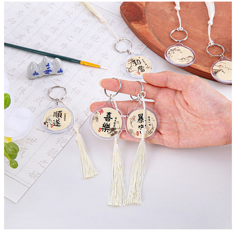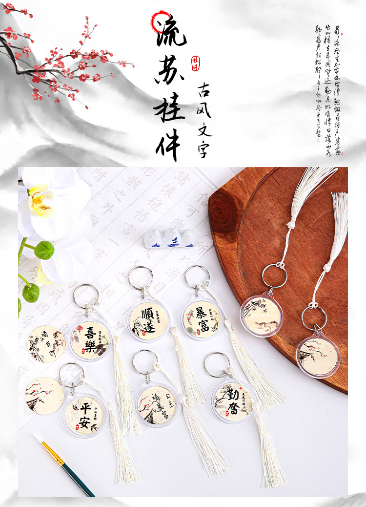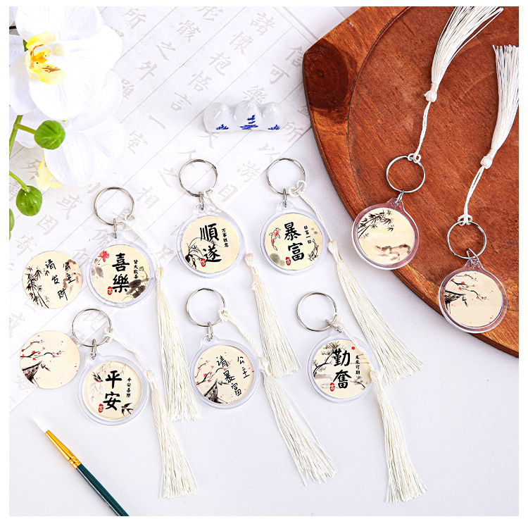 중국 스타일 술 키 체인 학생 영감 텍스트 장식 펜던트 창조적 인 골동품 DIY 열쇠 고리 장식품