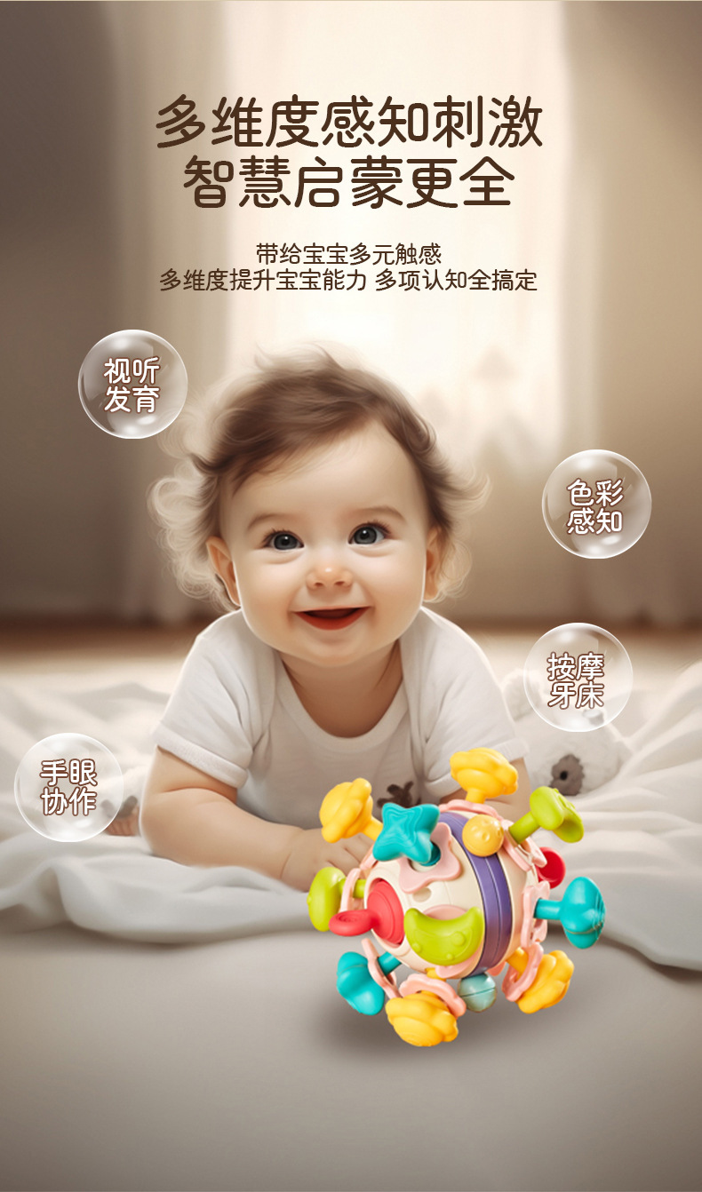 Tiktok 아기 teether 볼 퍼즐 조기 교육 맨해튼 핸드 볼 터치 느낌 훈련 그립 장난감스토어 가기