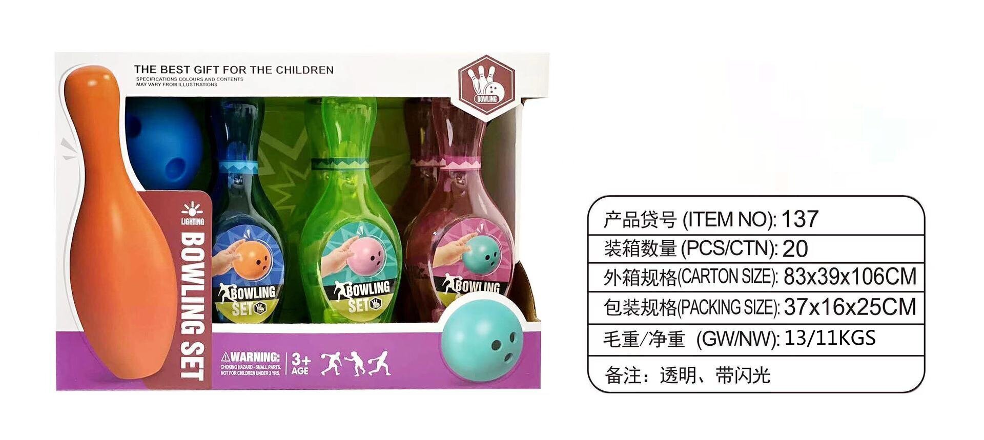 货号138至135此系列为24cm发光保龄球(瓶和球内置有红蓝全闪灯,振动自动闪亮)配9.8CM圆球