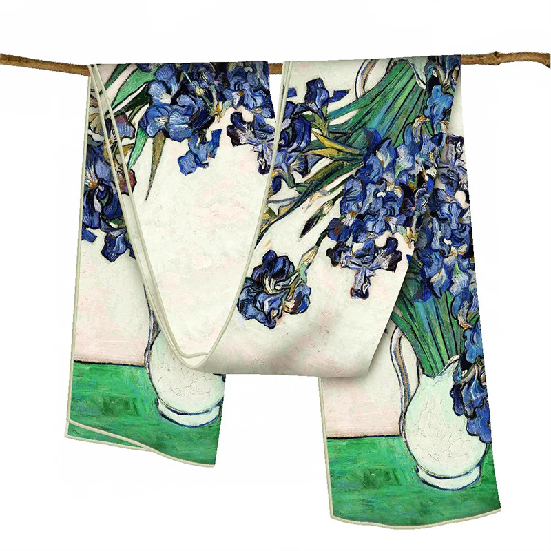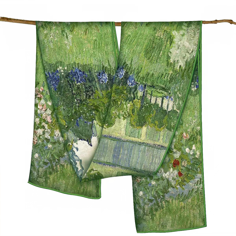 스카프 2024 봄 새로운 행운 유화 스타일 수제 Curled 복고풍 고급 목도리 장식 선물 스카프